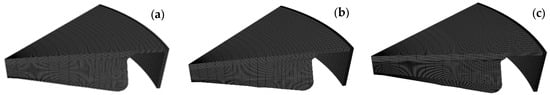 Mesh grid resolution at 3 CAD BTDC: (a) 25,000 cells, (b) 50,000 cells, (c) 100,000 cells.