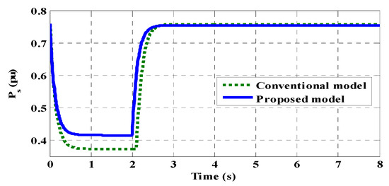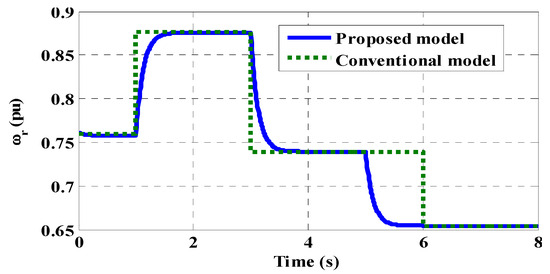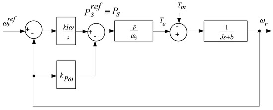 That is dependent directly on the stator active power. Adjusting the stator power controllers Equations (25) and (26) being quicker than the angular speed controller, considering utilizing the timescale division assumption. In view of only the slow dynamics of from Equations (17) and (48), the block diagram in Figure 1, Figure 2 and Figure 3 derived analytically. Recognizing the mechanical torque as a disruption, the transfer function given below is obtained for the closed-loop system: