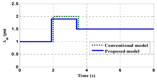 For PMSG of MW ratings, the stator resistance is estimated at the extent of (mΩ), although for 50 Hz utility grids rad/s. Consequently, the q-axis stator flux component has a value that is small in number, having a stable value; thus, the d-axis stator flux component supposes a fairly steady state value , shown as follows: