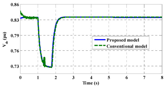 Equation (40) defines the DC-voltage dynamics, and it is noted that the usual method of evaluation regarding the grid-side converter takes into account the DC current as a disturbance input on the opposite side. The closed-loop transfer function is taken as follows in Equation (41):