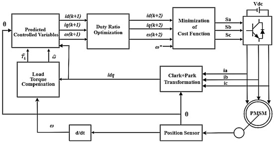 - Yahia, T.; Ahmed, A.A.; Elzawawi, A.; Ahmed, M.M. Model Predictive Direct Speed Control of PMSM with Load Torque Compensation. In Proceedings of the 2021 24th International Conference on Electrical Machines and Systems (ICEMS), Gyeongju, Republic of Korea, 31 October–3 November 2021; IEEE: Piscataway, NJ, USA, 2021; pp. 1335–1341. [Google Scholar]