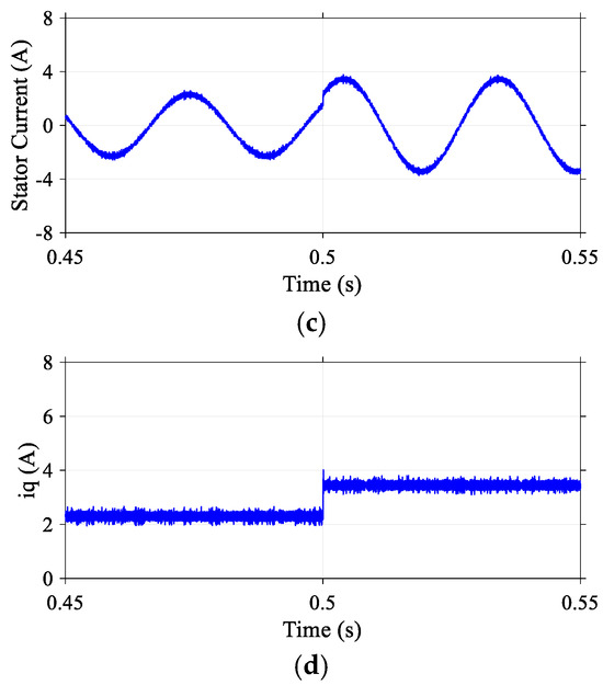 The waveforms of the stator current were adapted instantaneously to the new torque demand without excessive ripples or transient oscillations. These results confirm that the DR-MPDSC method ensures robust dynamic performance and enhances system stability under varying load conditions.