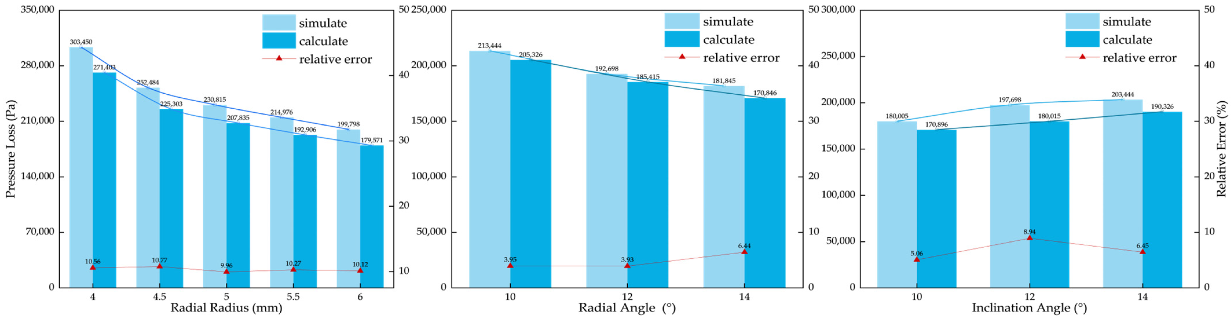 4.1.2. Mathematical Model of Flow Passage Pressure Loss