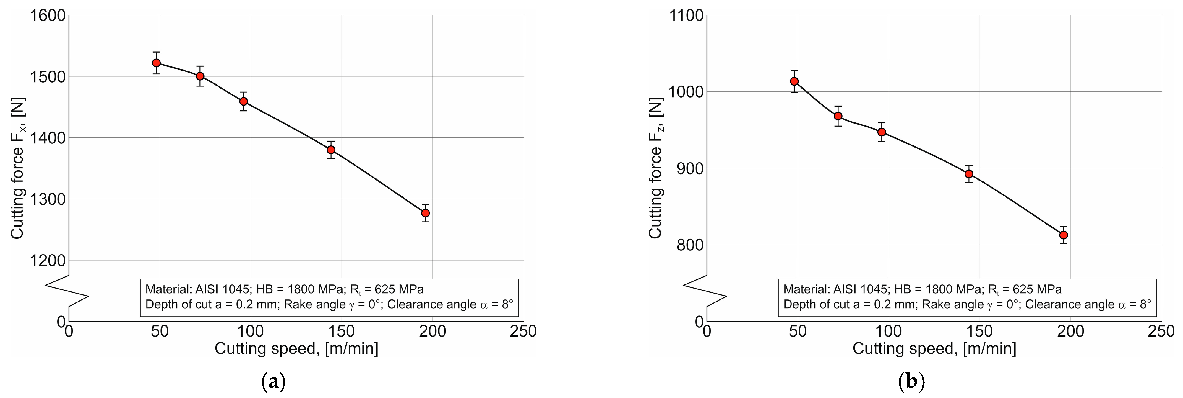 Figure 14b). If it is necessary to predict this component of the cutting force using the HFM friction model, it is also necessary to connect the process of determining the parameters of the material model and, possibly, the damage model of the machined material (see above). It should also be noted that to predict the cutting force