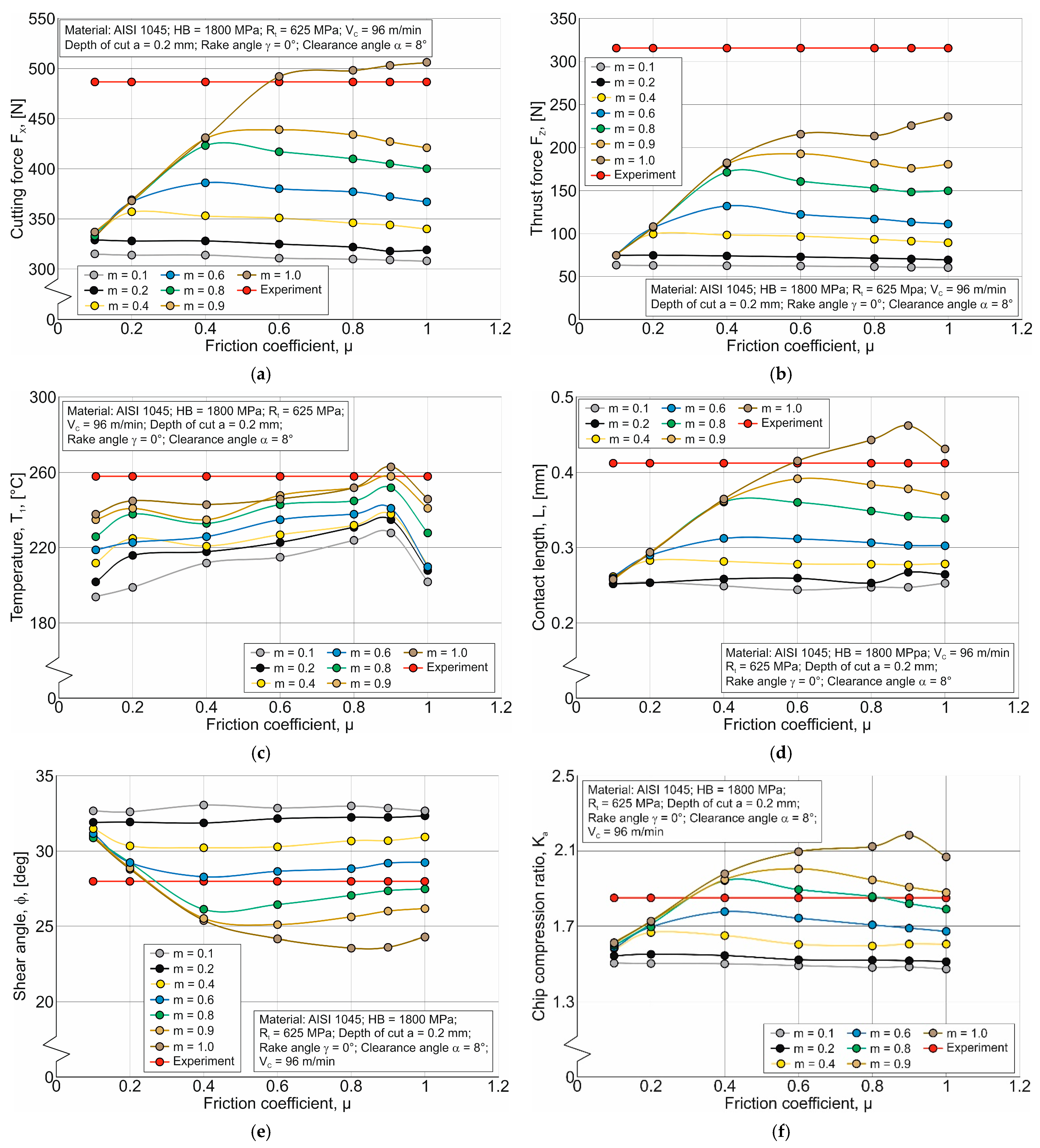 m on the analyzed main characteristics of the cutting process. Analysis of these diagrams suggests that it is possible to predict these main characteristics using the HFM friction model. The only exception is the effect of the coefficient