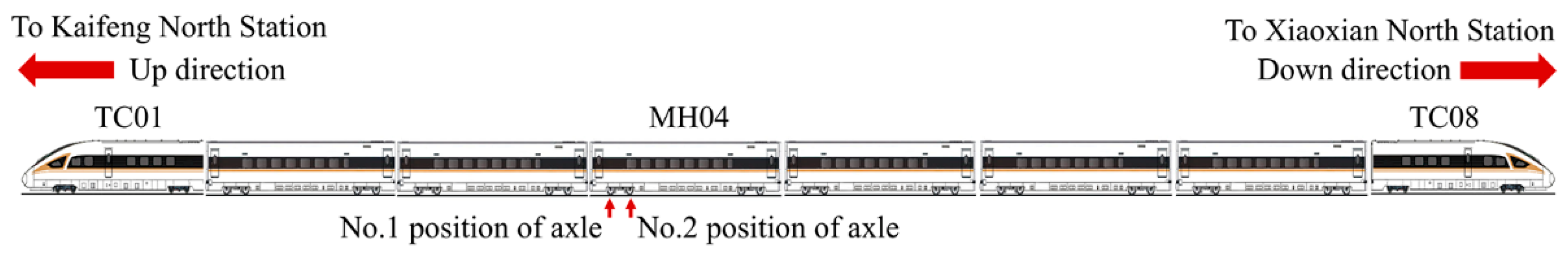 - Qiao, S. Research on High-Speed Train Working Condition Recognition Based on Multi-Scale Entropy of Frame Load Signal. Master’s Thesis, Beijing Jiaotong University, Beijing, China, 2021. [Google Scholar]