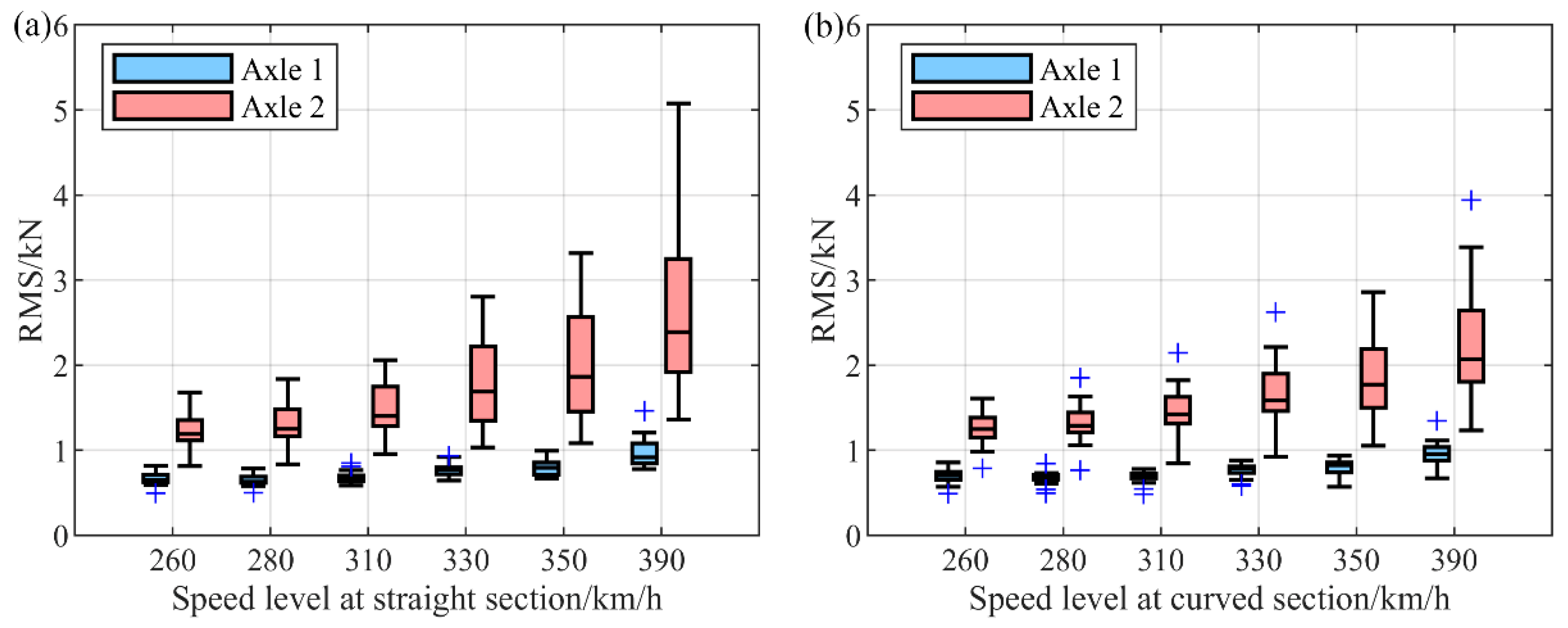 - Ren, Z.; Cao, J.; Li, Y.; Wang, B.; Wei, X. The load characteristics of the bogieframe of high-speed EMU. Eng. Mech. 2021, 38, 242–256. [Google Scholar]