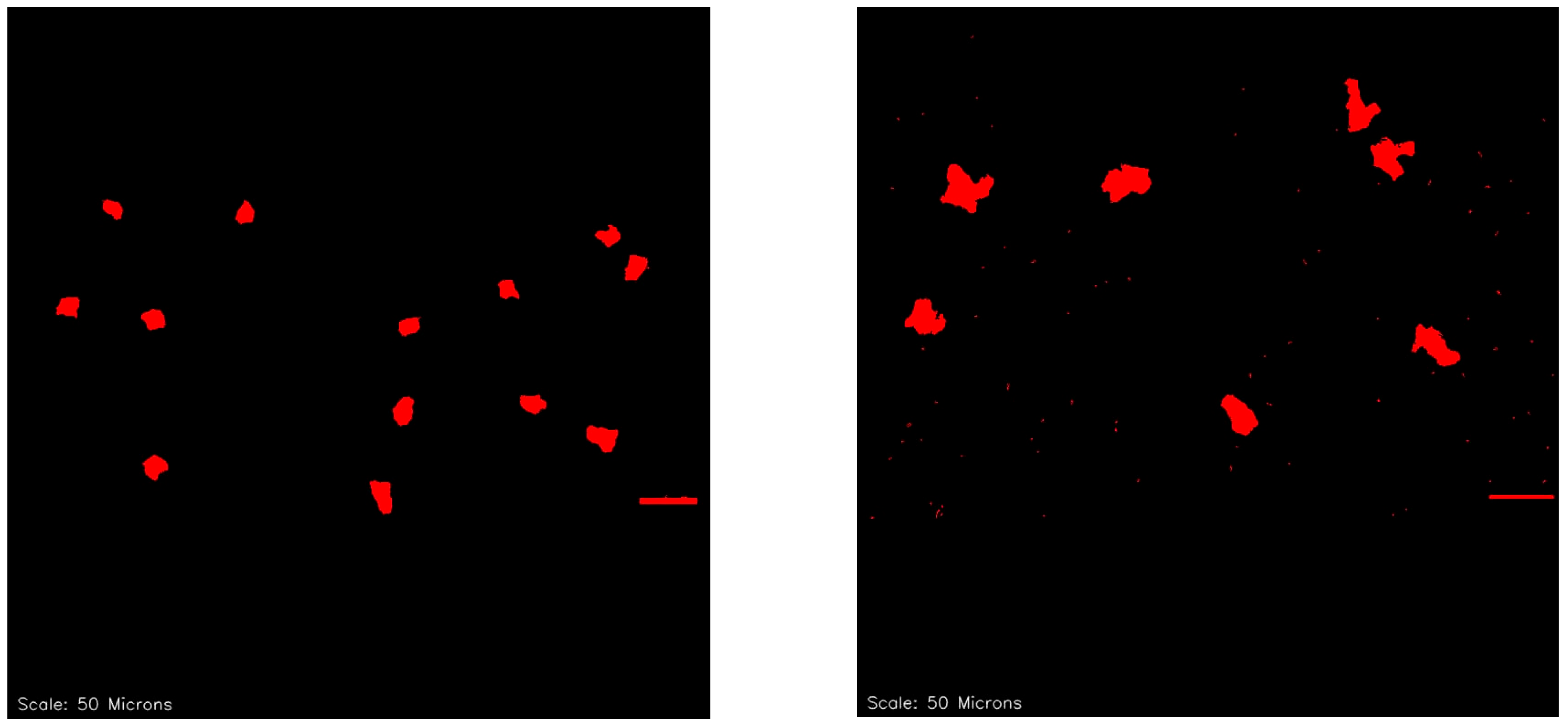 Figure 3). The identified red areas were subsequently analyzed in detail using contour detection techniques. The pixel-based area of each red zone was calculated and converted into microns using a predefined scaling factor. As illustrated in