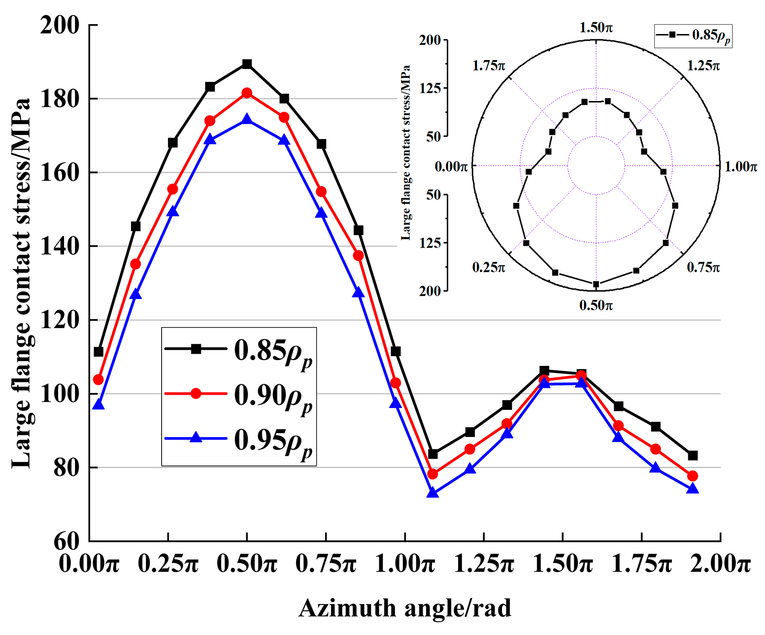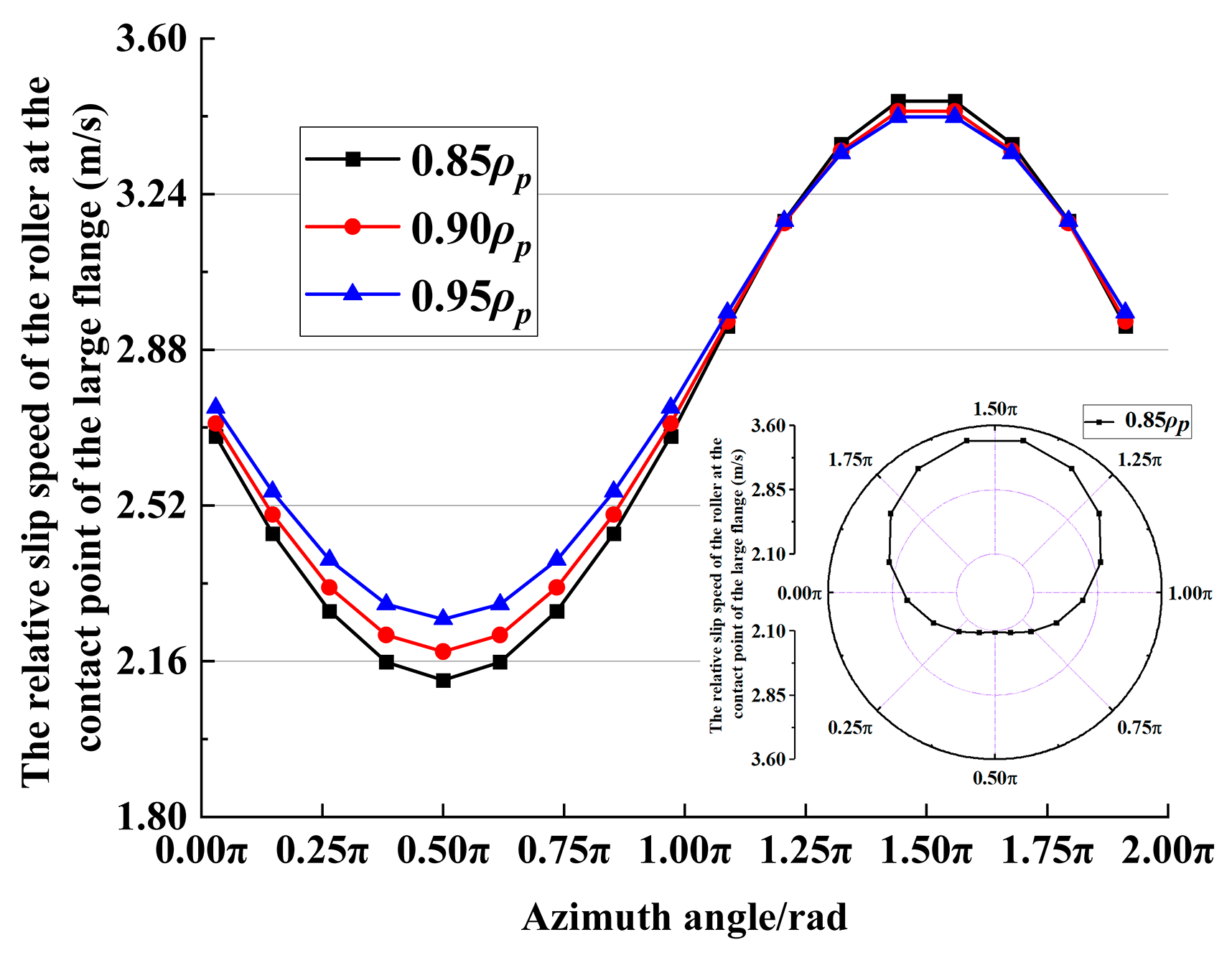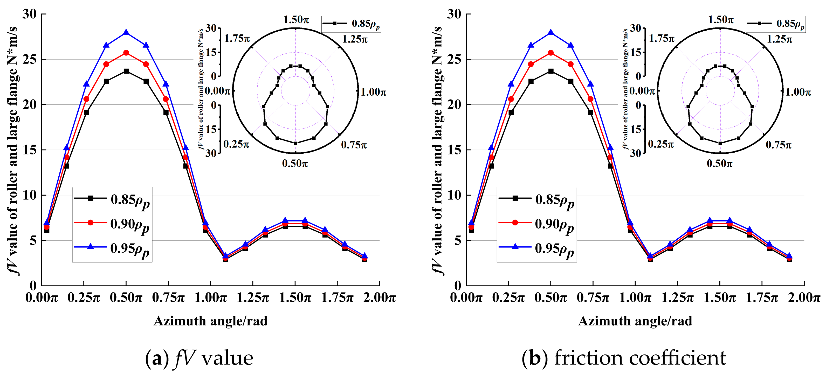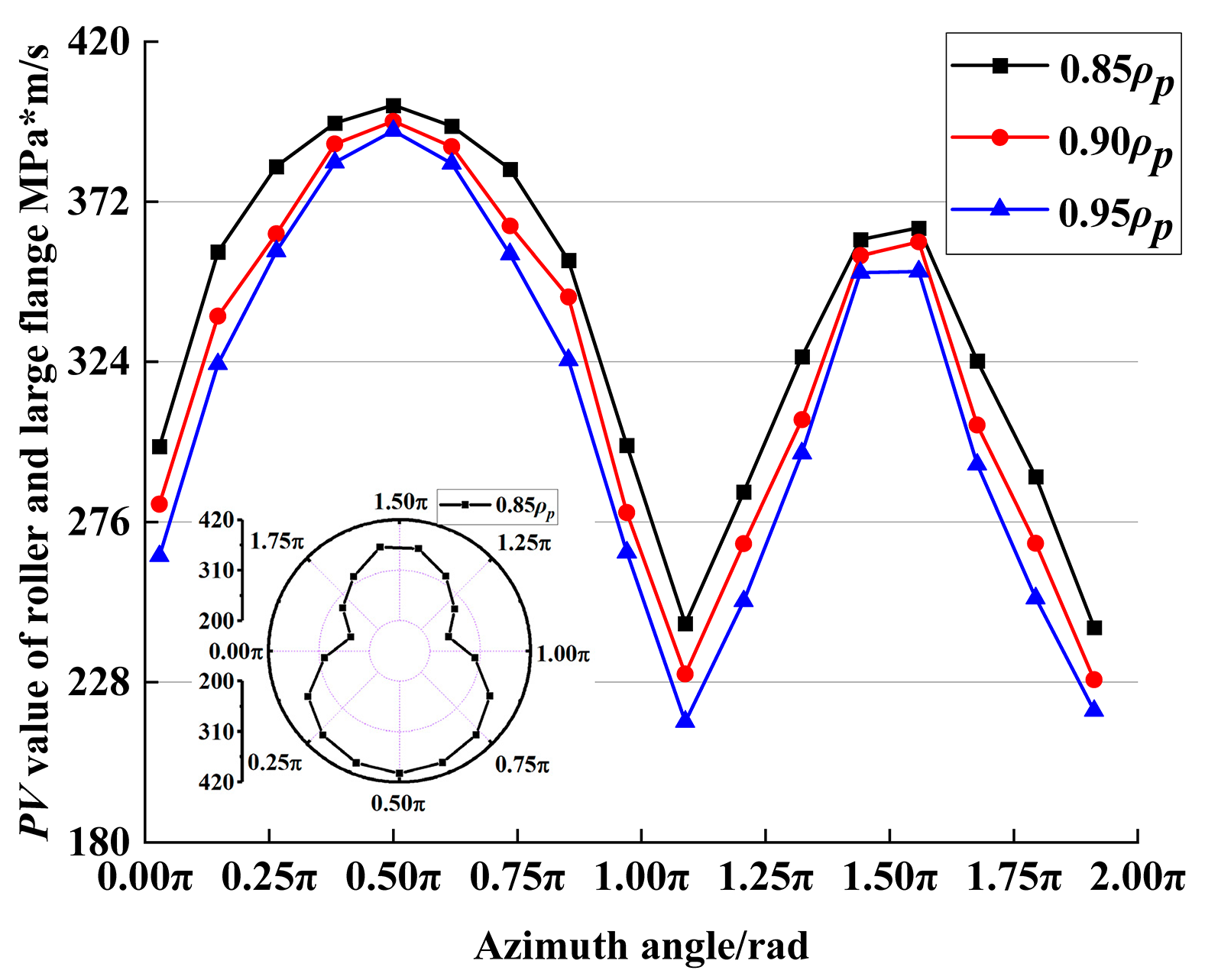 - The larger SR makes the contact stress, contact height, and PV value of the contact area between the base surface of the roller ball and the large flange smaller, but the relative sliding speed and fV value between the roller ball base and the contact area of the large flange is higher, and the final bearing friction torque increases with the increase of SR.