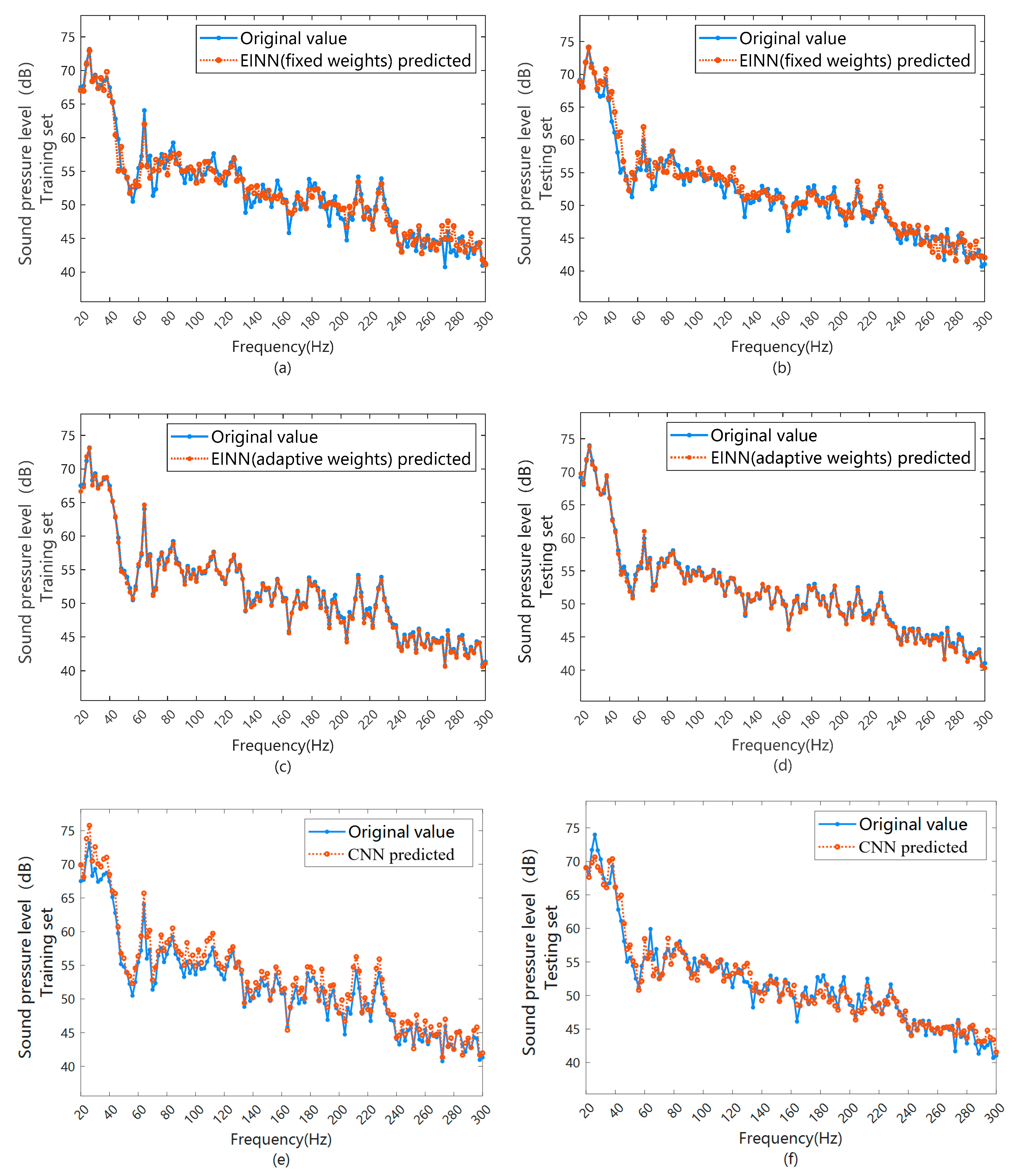 - This study proposes an Empirical-informed Neural Network (EINN) method. By redesigning the neural network’s loss function, the local vibro-acoustic mechanism is embedded in it in the form of constraints. Even in the absence of an accurate physical model, this method can use empirical data to guide network learning and construct a hybrid neural network model that combines knowledge and data-driven methods. This innovation successfully addresses the traditional physical information neural network’s reliance on precise physical models when handling complex systems, thereby greatly broadening its scope of application.