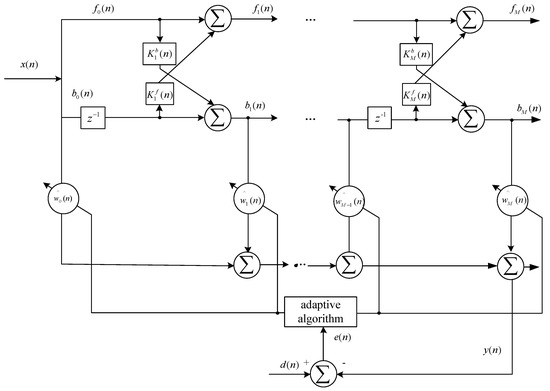 Based on the decoupling characteristics of backward prediction error, using it as a tap input signal from an adaptive filter has many benefits, such as the ability to easily control the number of filter sections, and global optimization is not limited by adding or reducing one section. If the entire system is optimized, it is equivalent to optimizing each part of the rod. And when a certain section is added or removed, the filter does not need to be readjusted [40,41].