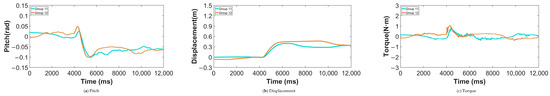 Further analysis suggests that this performance difference primarily stems from DBO’s multi-subpopulation cooperative search mechanism, which effectively prevents premature convergence to local optima within limited iterations and enables the discovery of superior control parameter combinations on a global scale. This allows MPC to more proactively correct disturbance errors during prediction and constraint scheduling, thereby ensuring faster convergence of pitch angle and displacement. Although this mechanism leads to an increase in peak torque and some computational overhead, both remain within a reasonable range, demonstrating that MPC optimized by DBO exhibits remarkable advantages in enhancing dynamic performance and impact disturbance rejection.