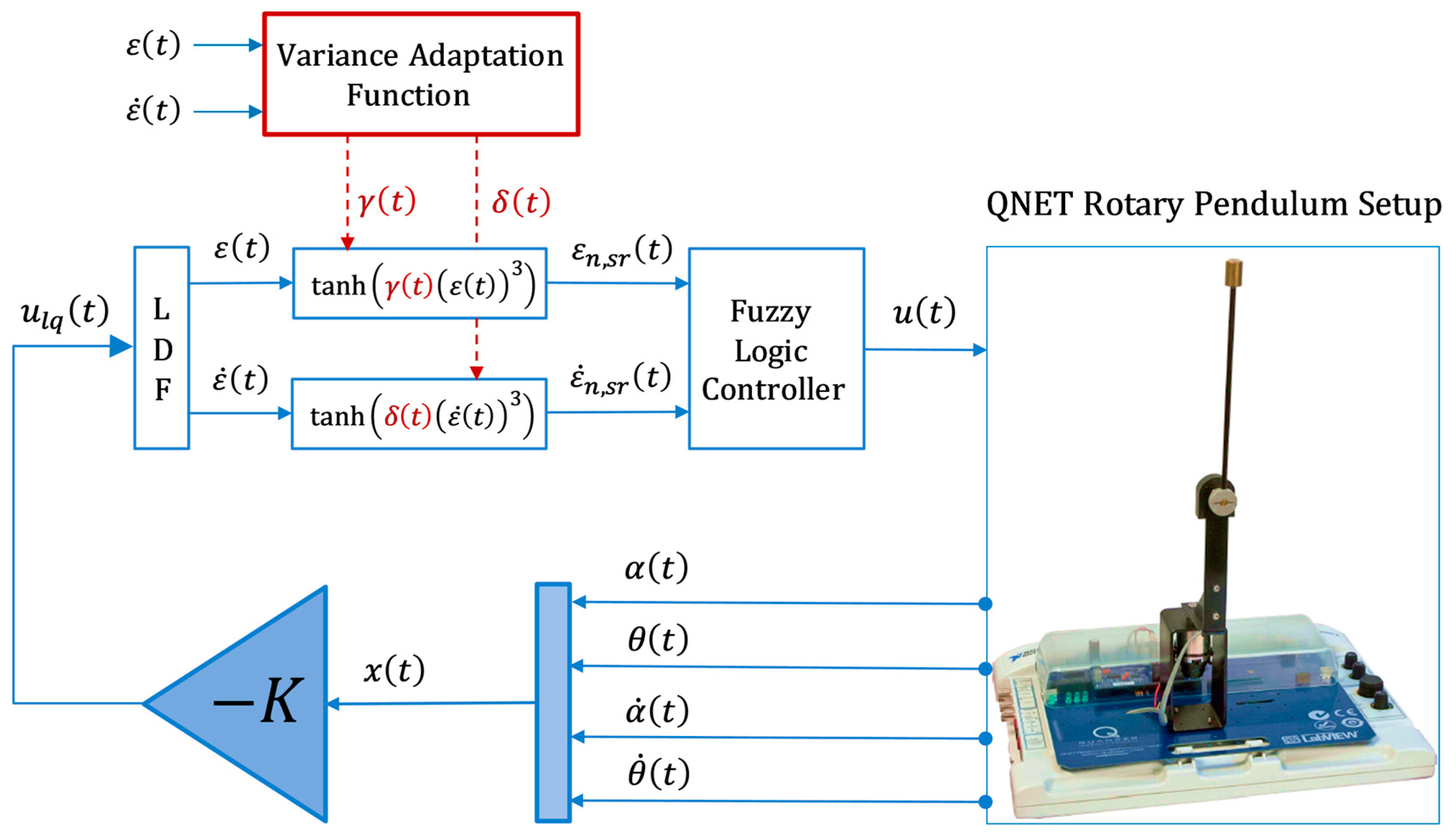 - Nguyen, T.V.A.; Dao, Q.T.; Bui, N.T. Optimized fuzzy logic and sliding mode control for stability and disturbance rejection in rotary inverted pendulum. Sci. Rep. 2024, 14, 31116. [Google Scholar] [CrossRef]