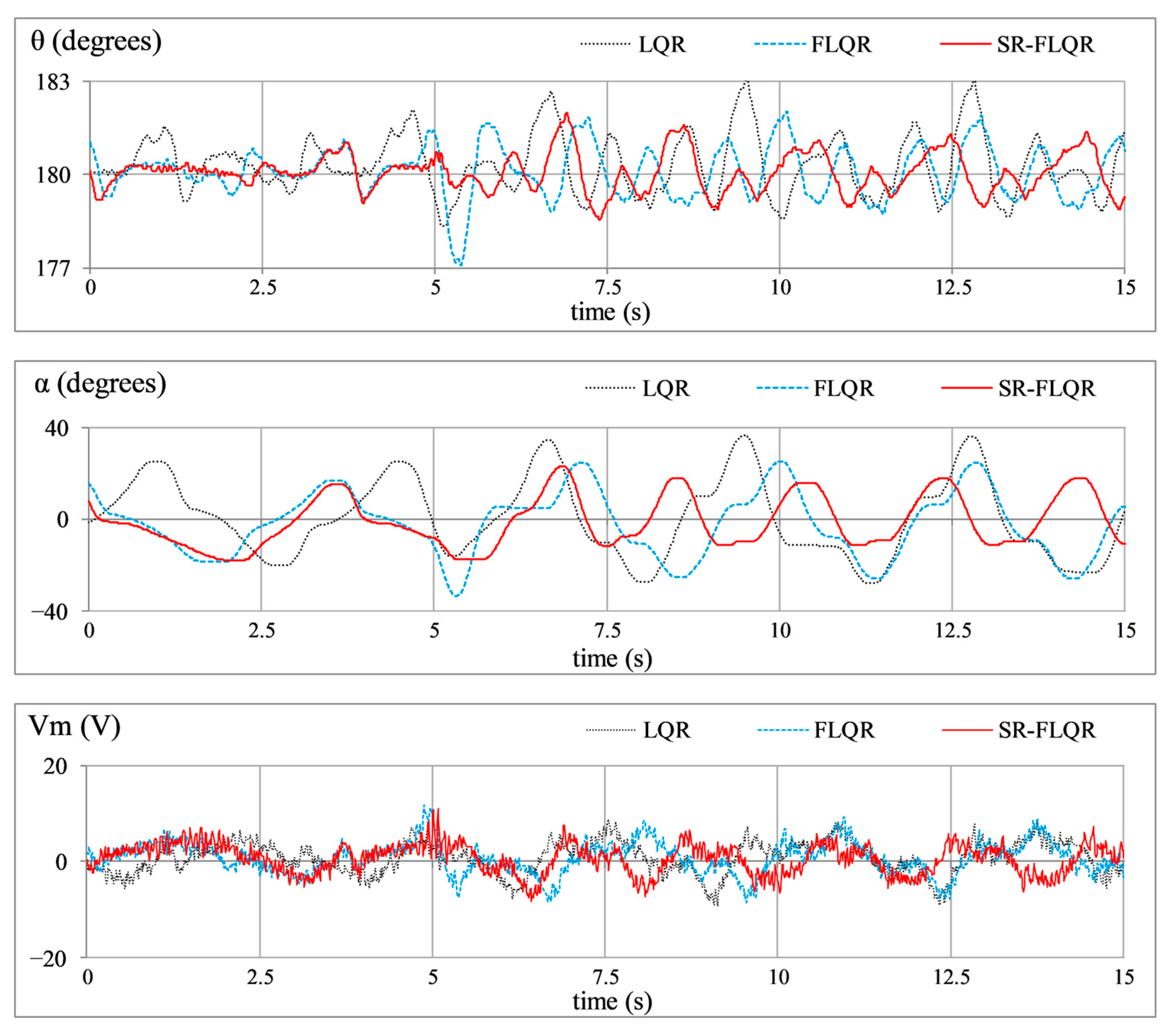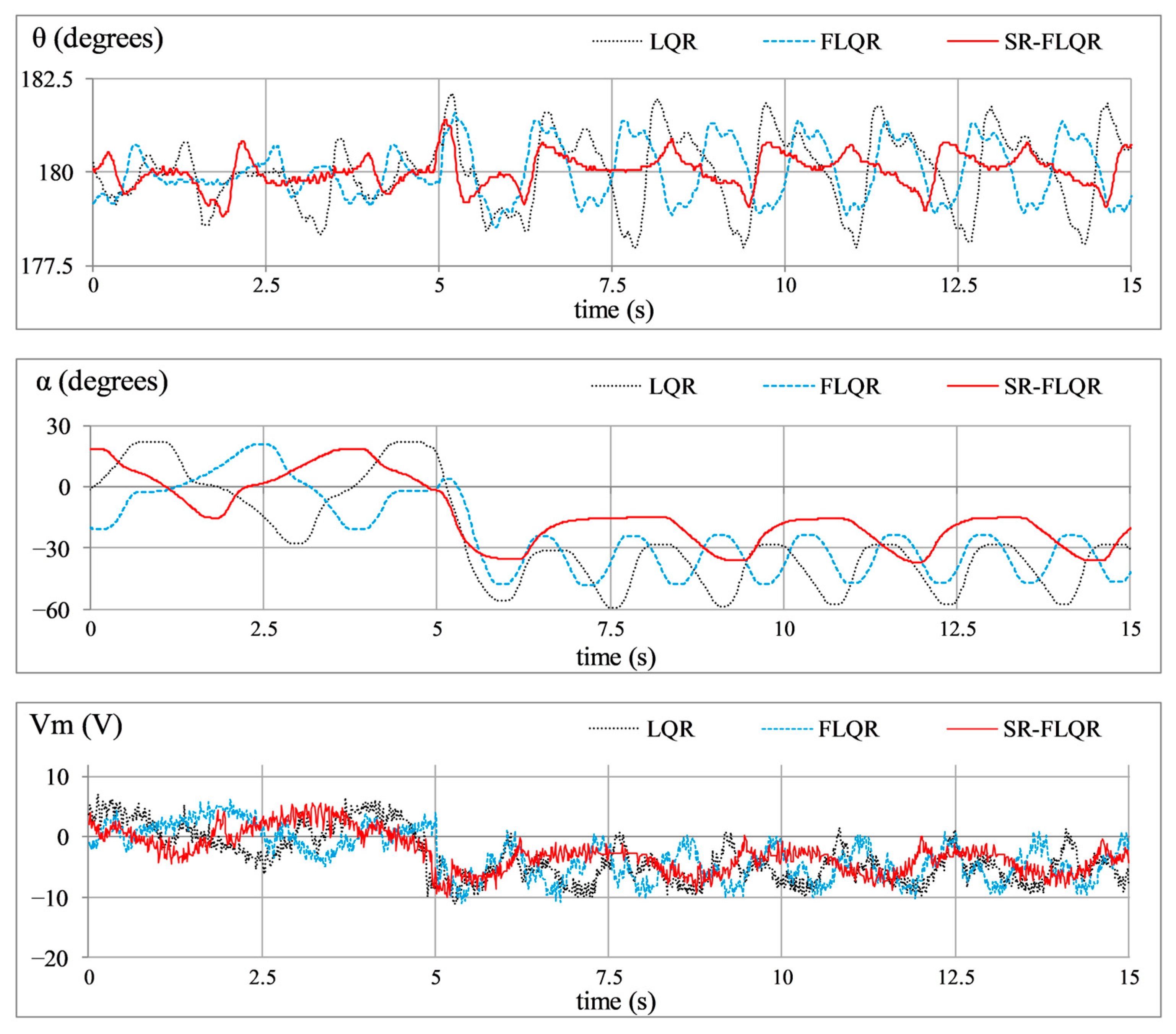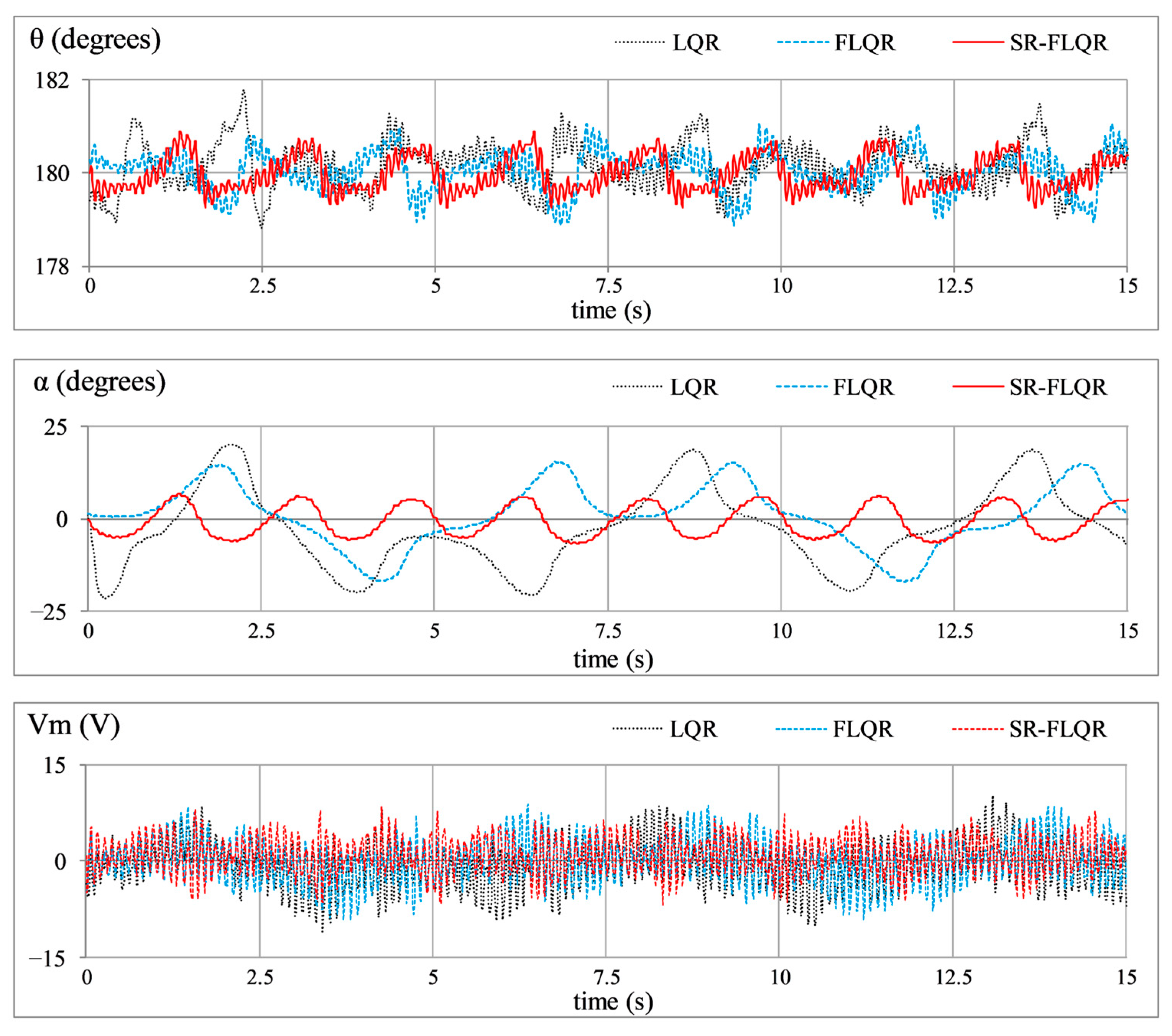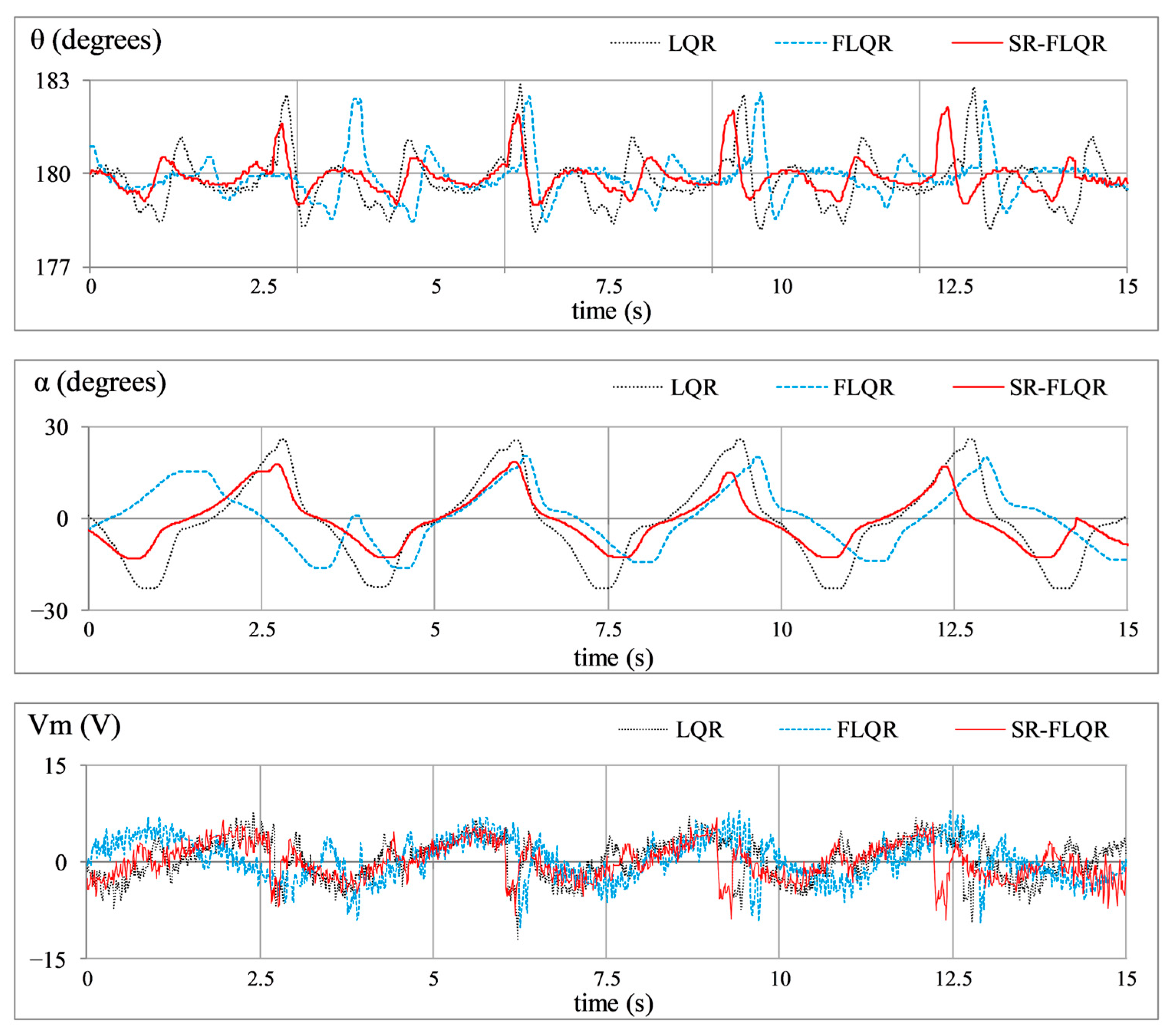 - Performance validation of the proposed self-regulating CS-FLQR against baseline CS-FLQR and classical LQR via customized experimental trials conducted on the Quanser rotary pendulum platform [39].