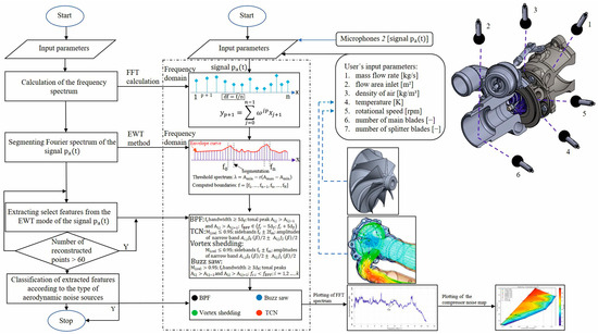 Flow diagram of the identification of aerodynamic noise sources of the centrifugal compressor based on a measured signal.