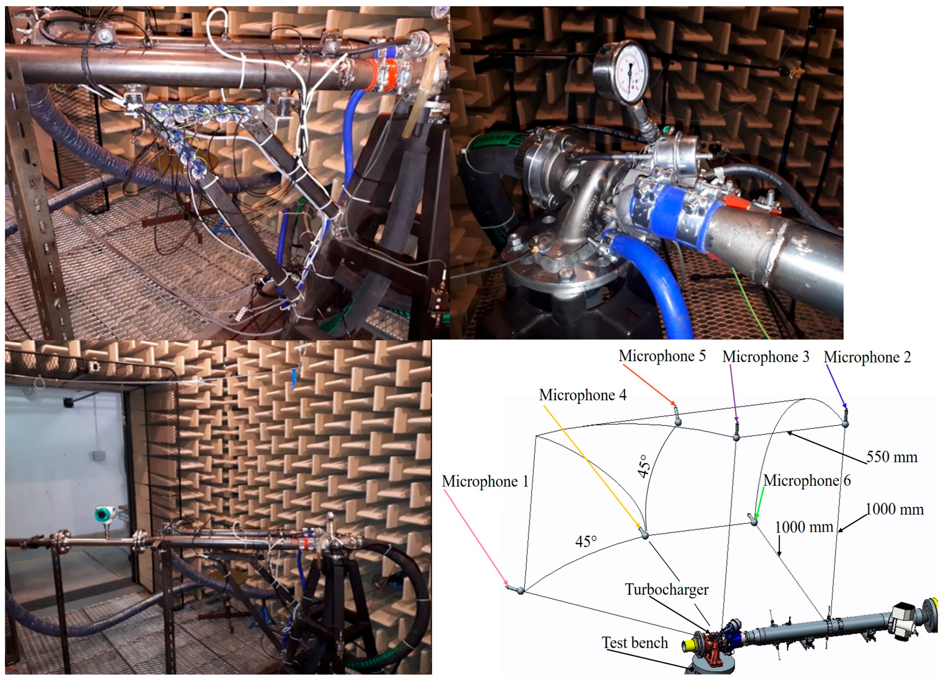 8], researchers described the influence of tone sound radiation into the pipeline system of the compressor. The tone components in the outlet pipe were higher than in the inlet pipe. This clearly showed that the rotor–stator interaction was important for the sound radiation to the outlet pipe, but not for the radiation to the inlet pipe [