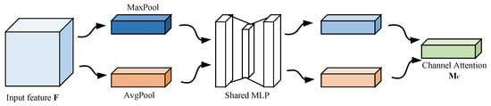 Here, signifies the input feature matrix. The terms and refer to the global average pooling and maximum pooling processes, respectively. is an abbreviation for multilayer perceptron, while denotes the Sigmoid activation function.