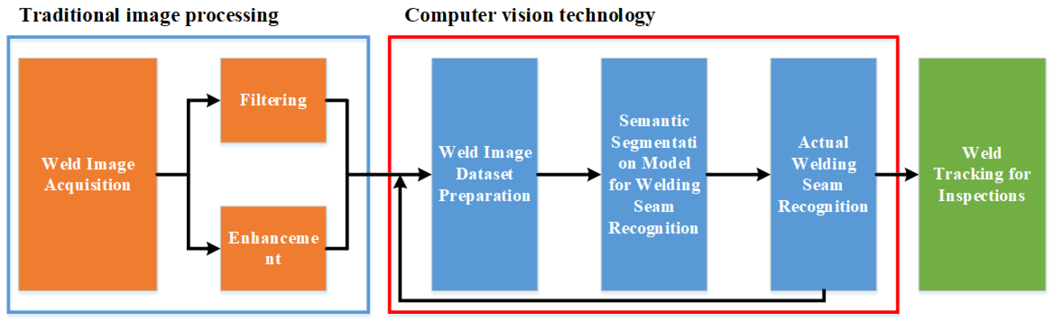 15], such as chemicals and shipbuilding. Traditional image processing methods involve denoising and enhancing the image, followed by feature extraction methods to extract information related to the weld [