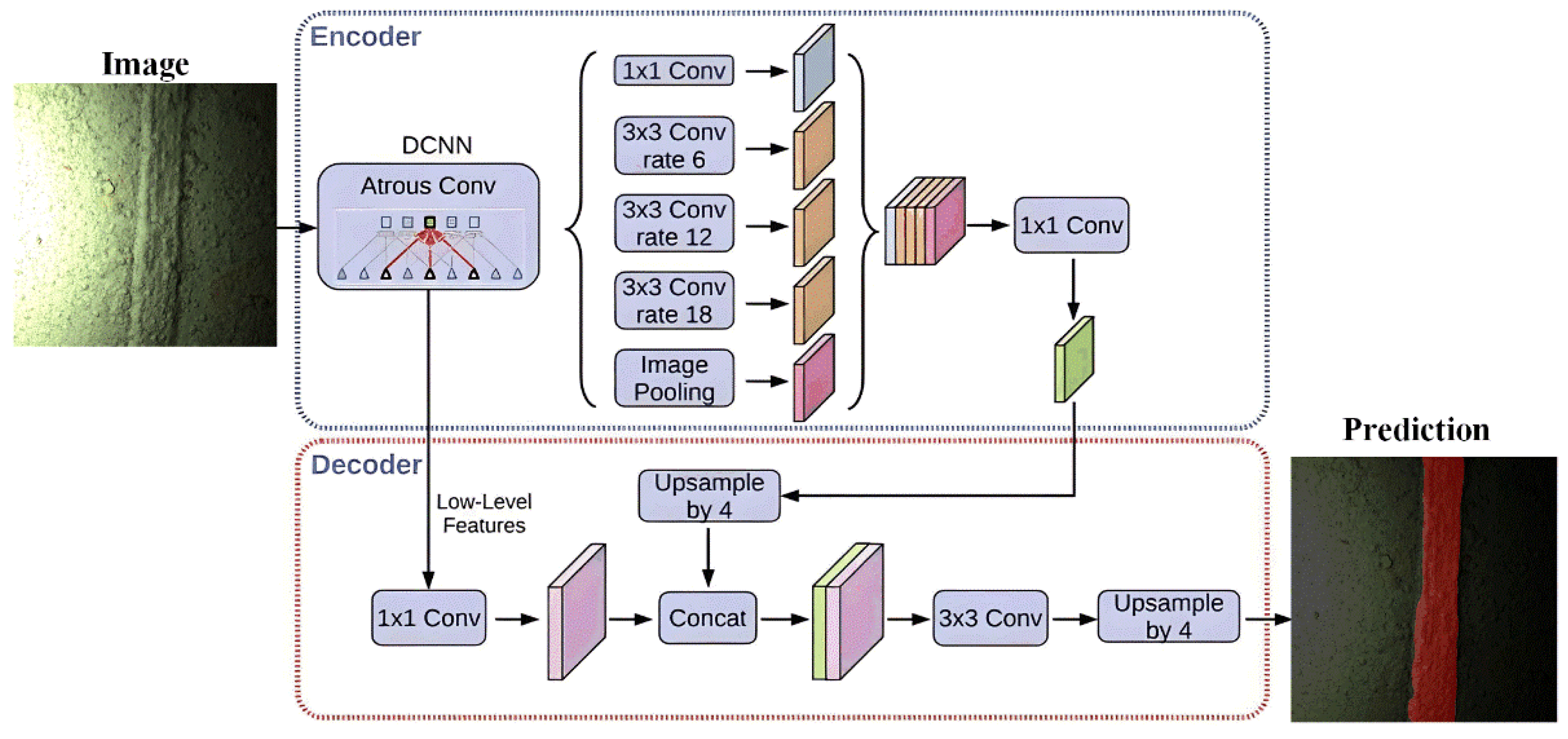 DeepLab is a series of semantic segmentation networks developed by Google. These networks utilize atrous convolutions to increase the receptive field and employ conditional random fields to improve the spatial consistency of segmentation. DeepLabv3 introduces a multiscale feature fusion module, which combines feature maps from different convolutional layers to achieve better segmentation performance. Additionally, DeepLabv3 employs deformable convolutions to further enhance the receptive field. DeepLabv3+ adds a decoder module to DeepLabv3 to restore the spatial resolution of segmentation results. This helps reduce jagged boundary effects in segmentation results and improves segmentation quality.