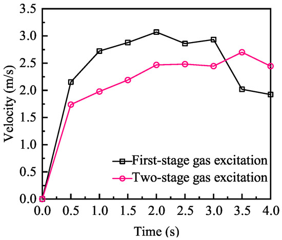Particle velocity comparison of first-stage and two-stage gas-excitation.