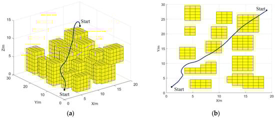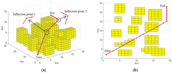 The A* algorithm path planning (a) Optimal flight path; (b) Overhead path.