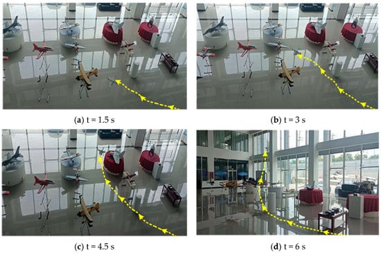 To validate the APFA* algorithm, we selected several waypoints based on its planned path. A total of twenty-five flight experiments are conducted, and the results are shown in Table 9. The data indicates that the deviation between the actual flight distance of the UAV and the path length planned by the APFA* algorithm (L = 35.8 m) did not exceed 5% in any experiment, which is within a reasonable range. Additionally, no collisions occurred during any of the flights.