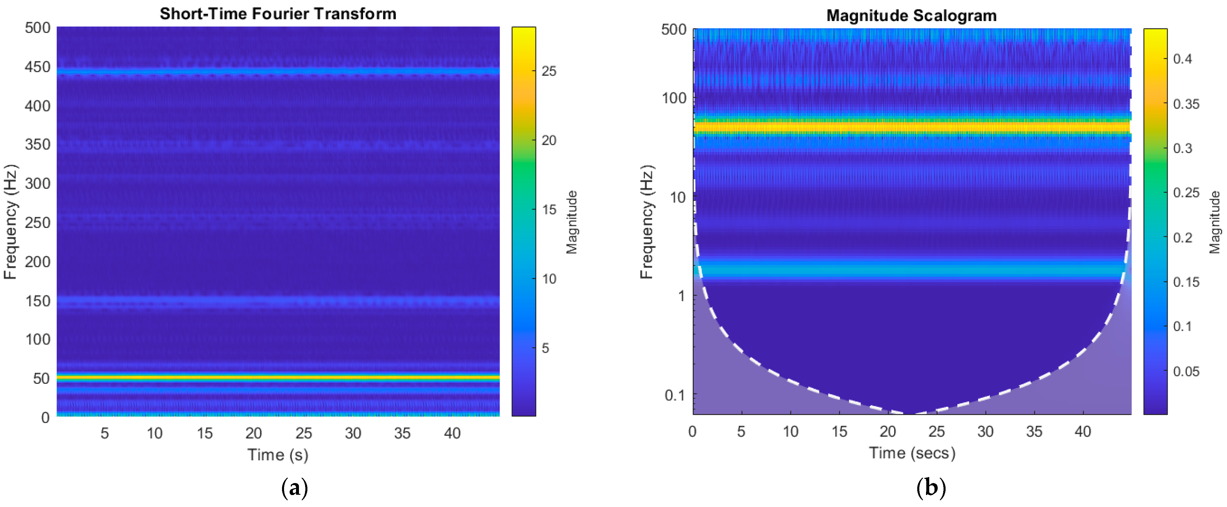 15], where the authors filtered the fundamental component from current signals to identify the harmonics related to different bearing conditions using both the CWT and STFT and compared the diagnostic performance of five CNN models extensively used in the literature, finding an improvement over non-filtered signals.