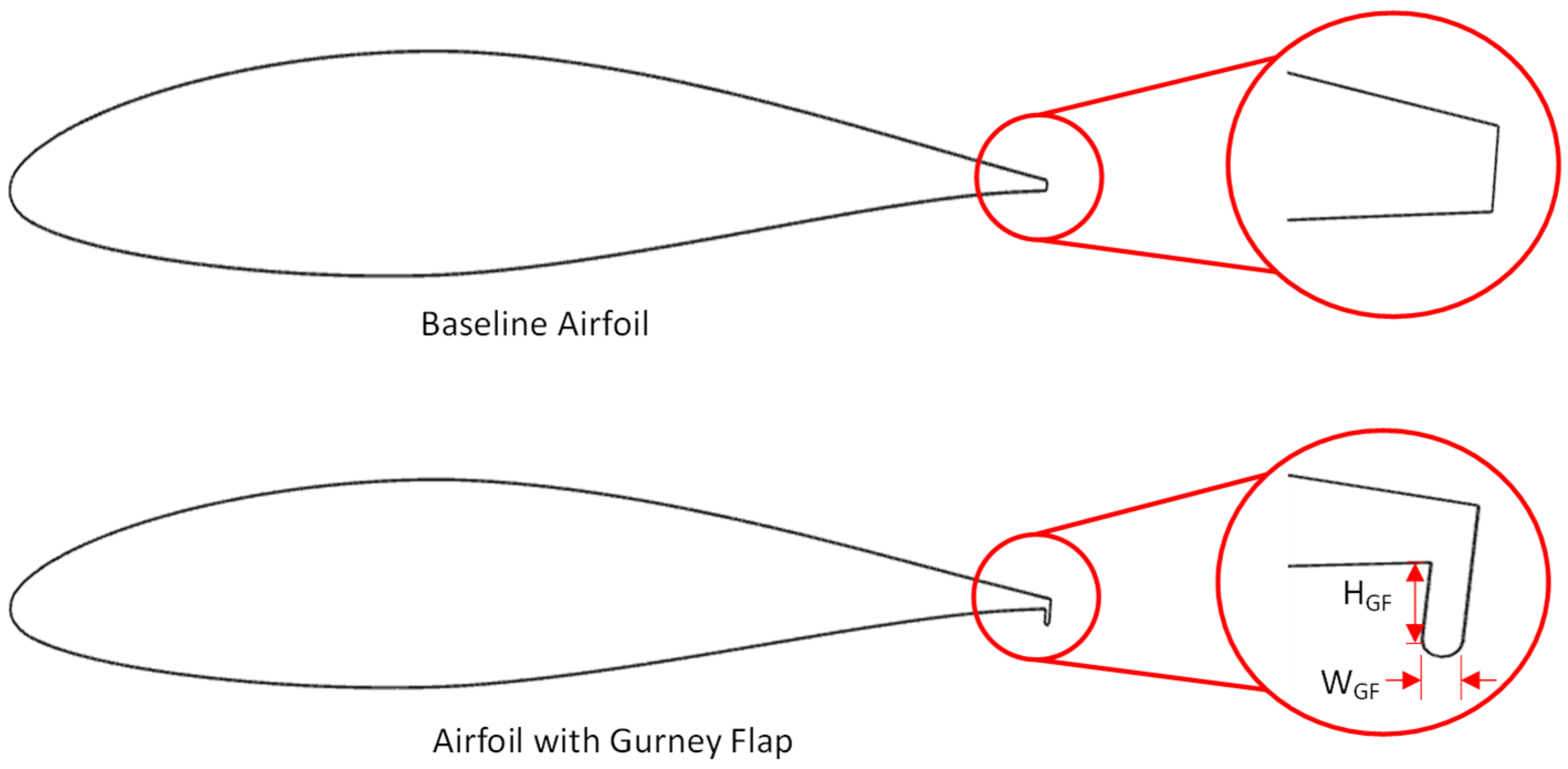 | Gurney flaps | GFs | 0.5, 1.0, 1.5 | %c |