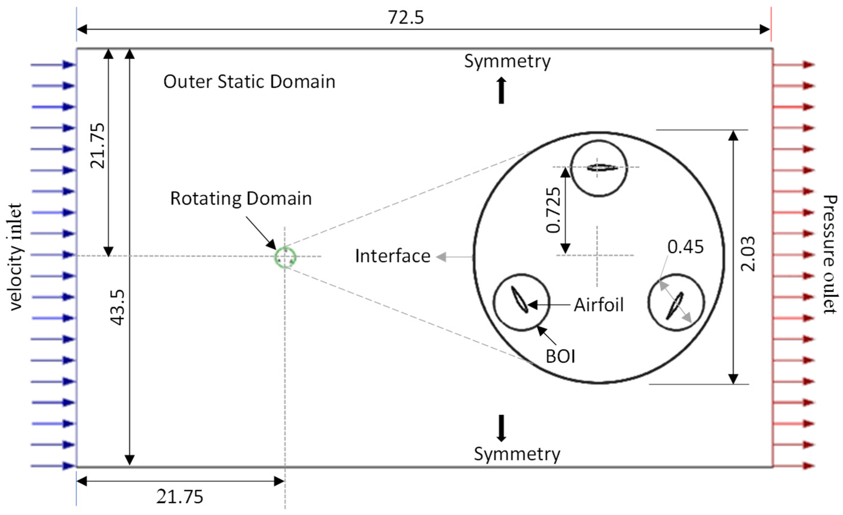 2.2. Geometric Domain and Boundary Conditions of VAWT