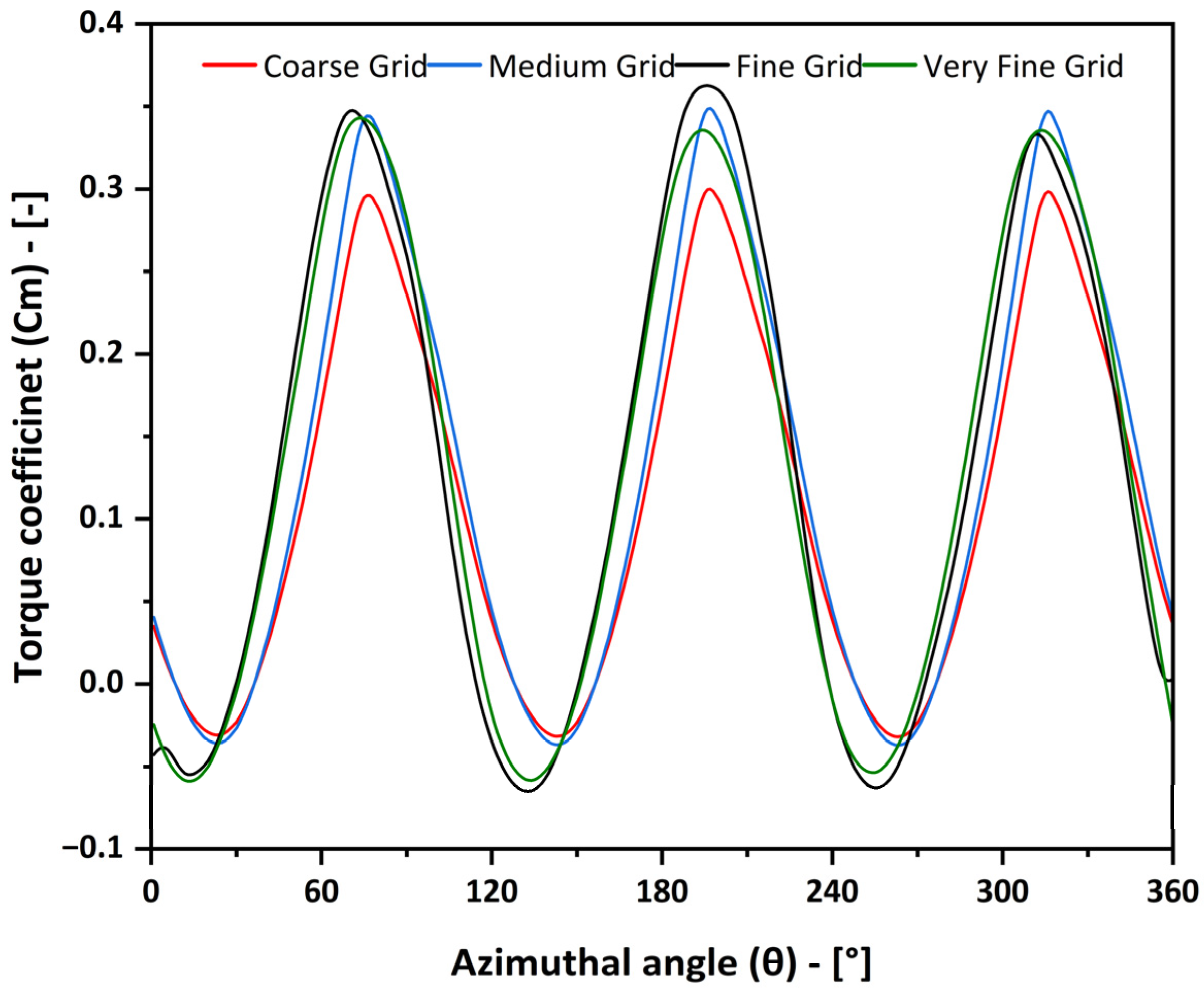 | Grid | No. of Divisions on Blade | No. of Boundary Layers | Growth Rate | Total Number of Elements | Average Torque Coefficient | Derivation (%) |