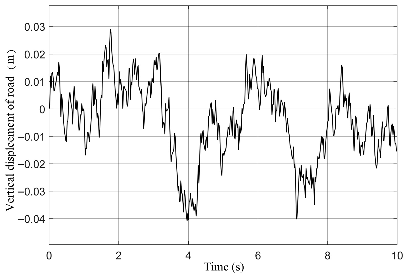 32] ‘Mechanical Vibration—Road Surface Profiles—Reporting of Measured Data’, this study employs a first-order filtered band-limited white noise method to establish the random road excitation model: