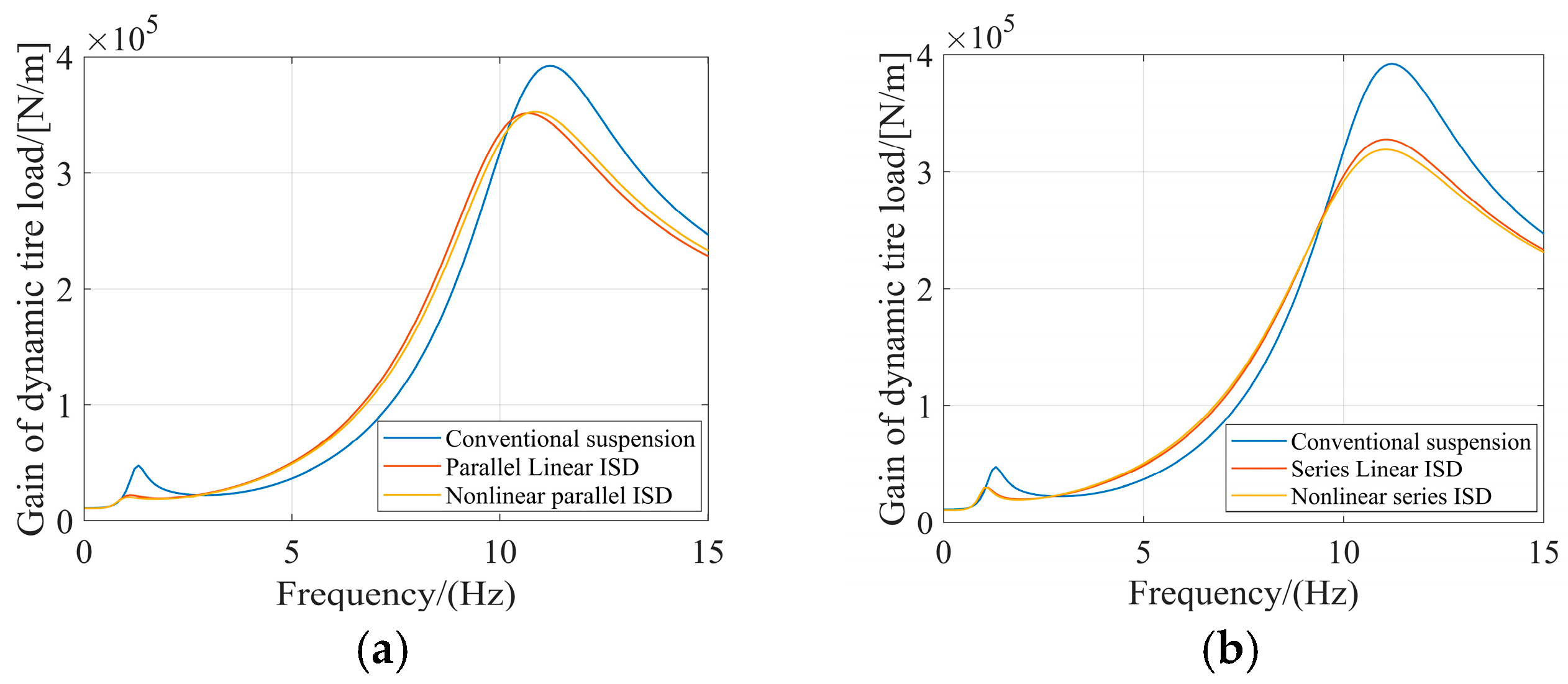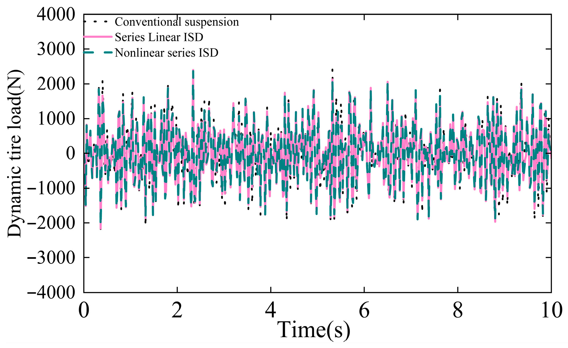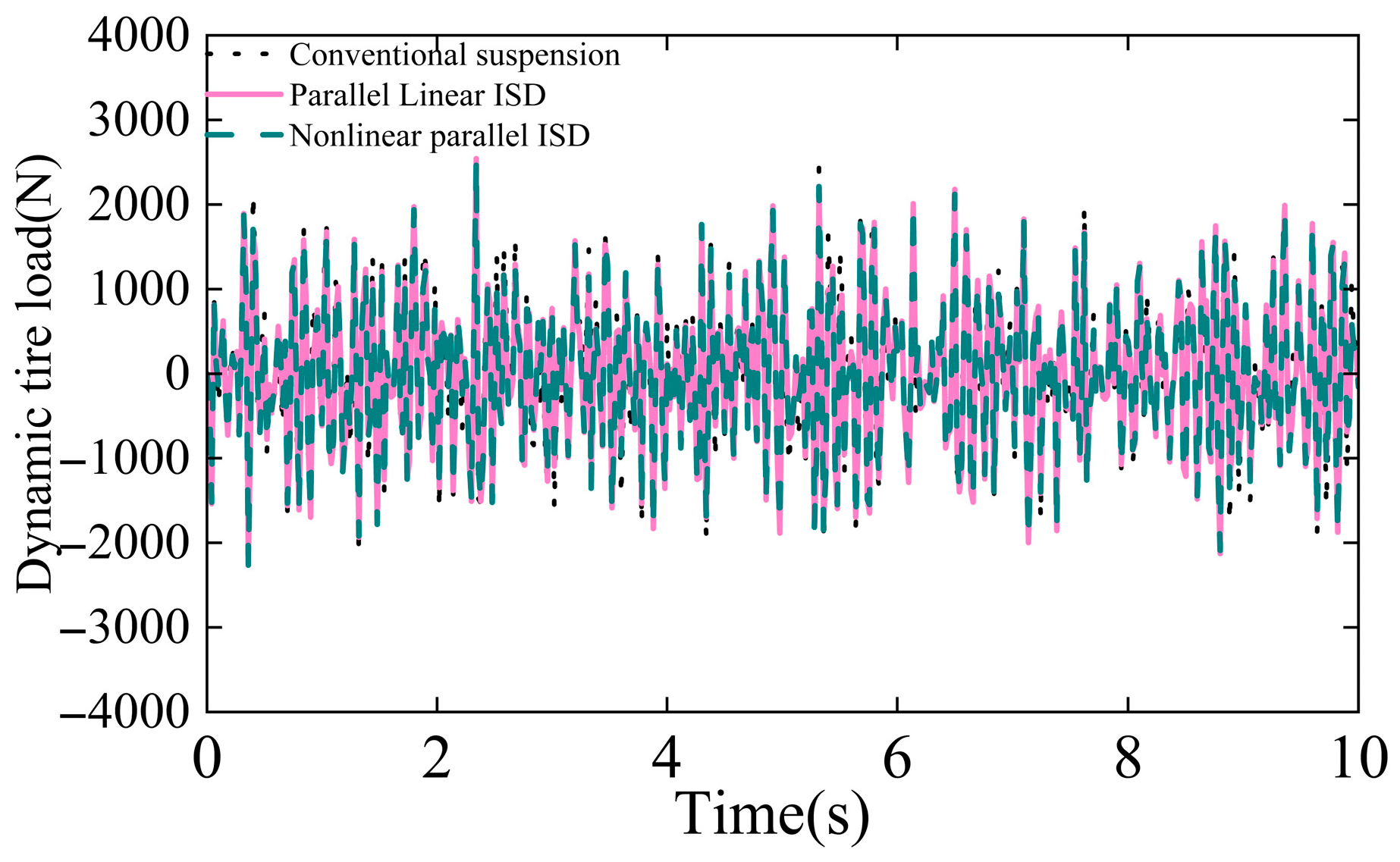 Figure 8 confirm enhanced dynamic tire load management, particularly for the nonlinear parallel ISD configuration.