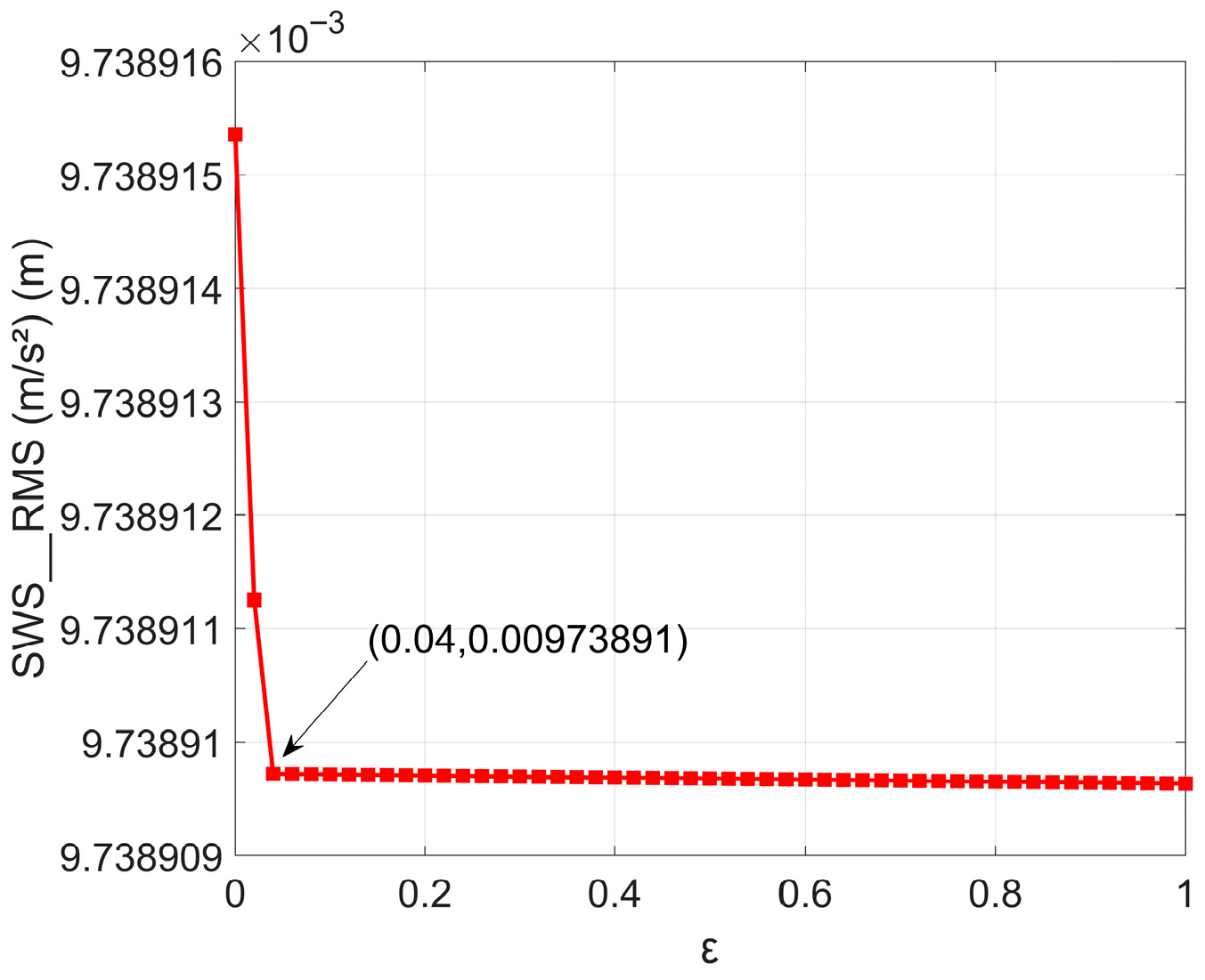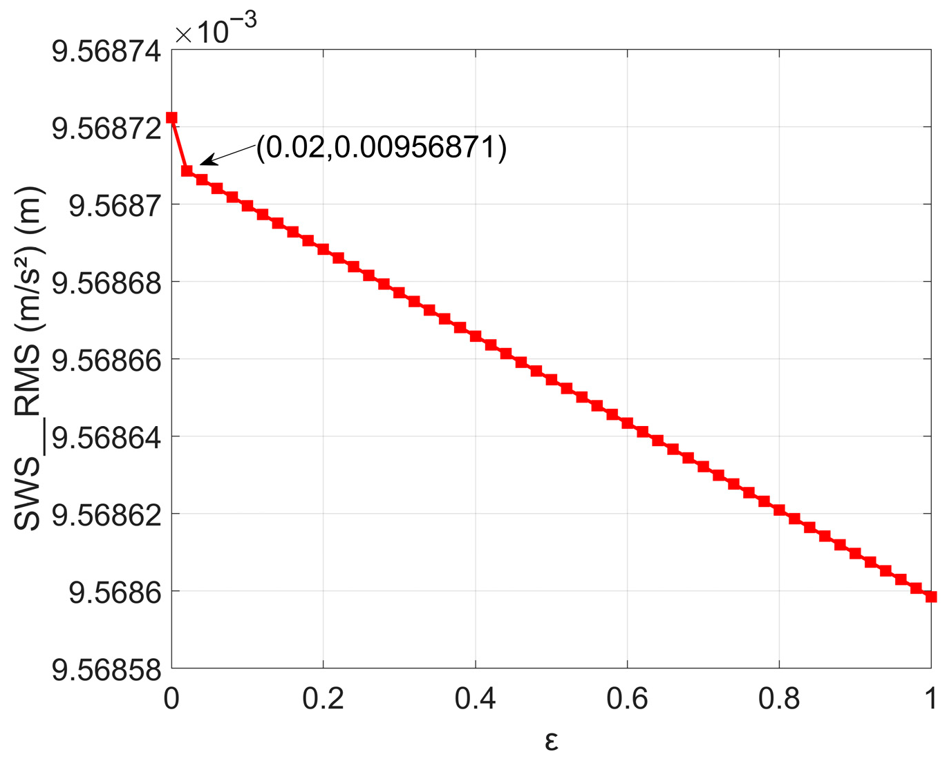 ε, indicating a gradual deterioration in ride comfort as nonlinearity intensifies. Conversely, the RMS of SWS (