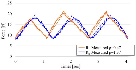 Figure 9 shows a comparison between the mechanism’s calculated force  in the y-direction and the measured  value with respect to time, which represents the SEA arms’ sensing ability on convex target surfaces without any control method applied. With a maximum gap of 2% in the maximum value area where actual sanding occurs, these results prove the effective sensing ability of the SEA sanding arms.