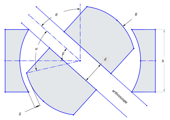 At the maximum θ, the arthroscope collides with the edge of the housing. Then,