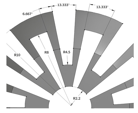 On the other hand, dimensions not needed for workspace fulfillment are the through-hole diameter and the height of the ball. Firstly, to facilitate the insertion and removal of the arthroscope through the ball joint, the diameter of the through-hole is selected to be 4.4 mm, which is 0.4 mm greater than the diameter of the scope. Secondly, the height of the ball is chosen to be 16 mm, so that the inner clamp surface may make contact with the ball for most angles to the vertical, and enough space is left for the deformed structures to occupy, and enough thickness is given to the structures so that they may not fracture. The dimensions of the slits may be seen in Figure 2.