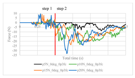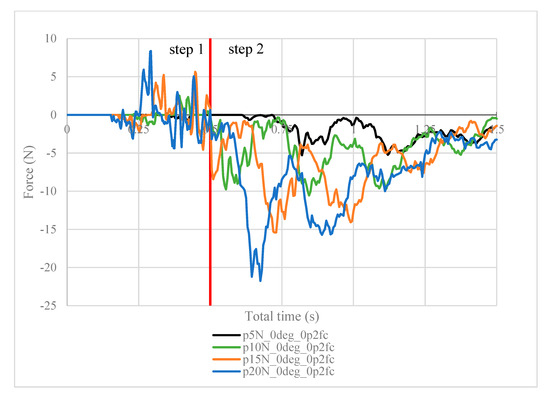 Contact force (N) measured in the positive z-direction between the arthroscope and the inner surfaces of the deformed ball, where friction coefficient is 0.2.