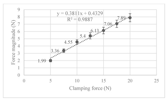 Mean contact force for each clamping force and their respective 95% confidence interval for true mean.