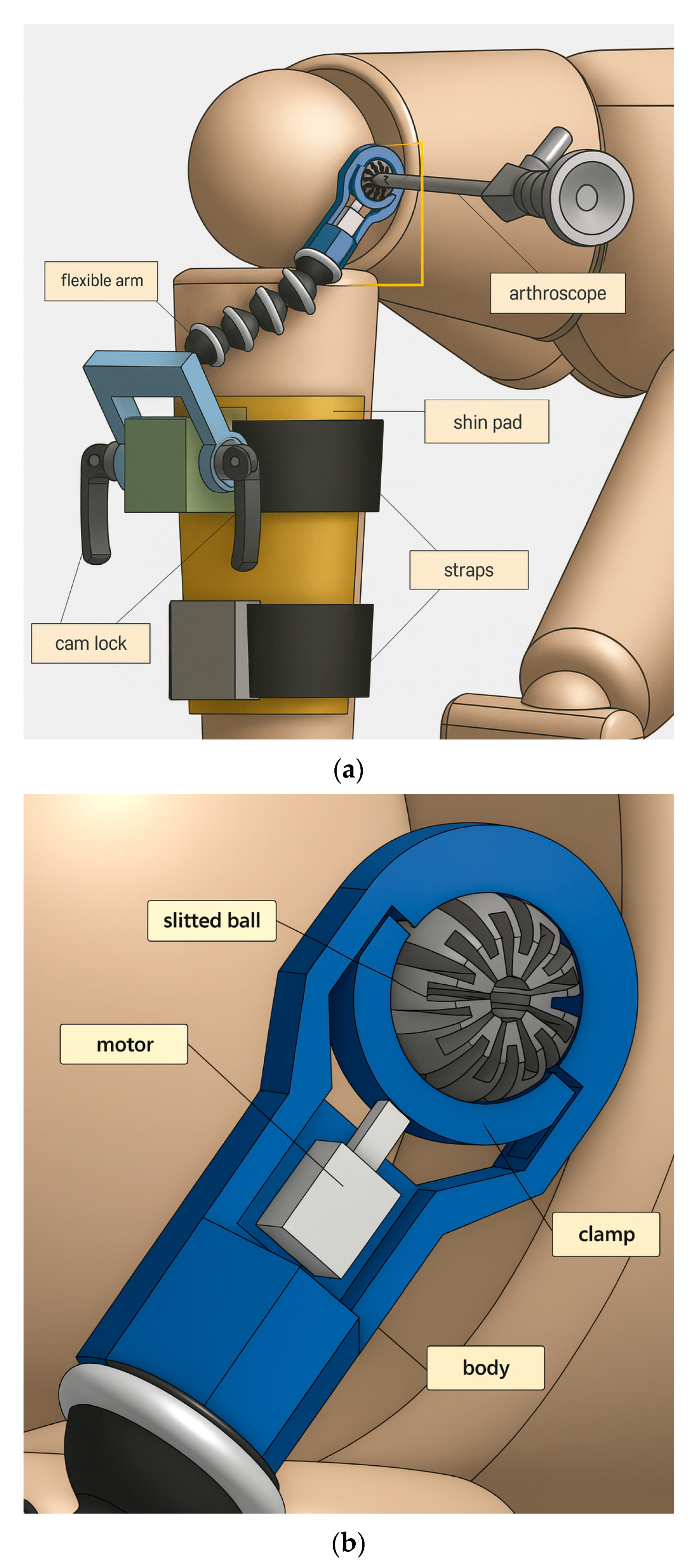 Hua, T.; Bai, Y.; Quear, A.; Aryal, S.; Song, S.-E. Design of a Semi-Robotic Knee Arthroscopy Support System Utilizing a Novel Ball Joint Braking Mechanism. Machines 2025, 13, 1014. https://doi.org/10.3390/machines13111014
