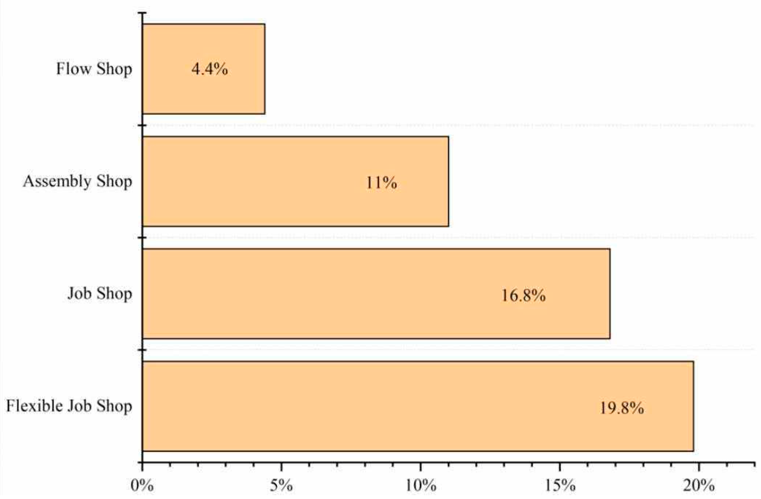 | 11 | 2021 | Huang Cheng, et al. [72] | Optimization of Digital Twin Job Scheduling Problem Based on Lion Swarm Algorithm. | Flexible job shop | DT. Lion swarm algorithm | In discrete manufacturing, flexible job shop scheduling often suffers from low equipment utilization and production delays caused by dynamic factors such as machine failures. | A digital twin-based job shop scheduling method using the Lion Swarm Optimization (LSO) algorithm is proposed. The method generates an initial schedule, builds a real–virtual interactive digital twin model, and dynamically optimizes the schedule in the virtual shop floor according to equipment utilization to handle real-time disturbances. | Experimental results show that the proposed method has strong search capability and fast convergence, finds better solutions across problem scales, and effectively mitigates production delays while improving overall system performance. | Journal of Shandong University. Engineering Science | Clarivate |