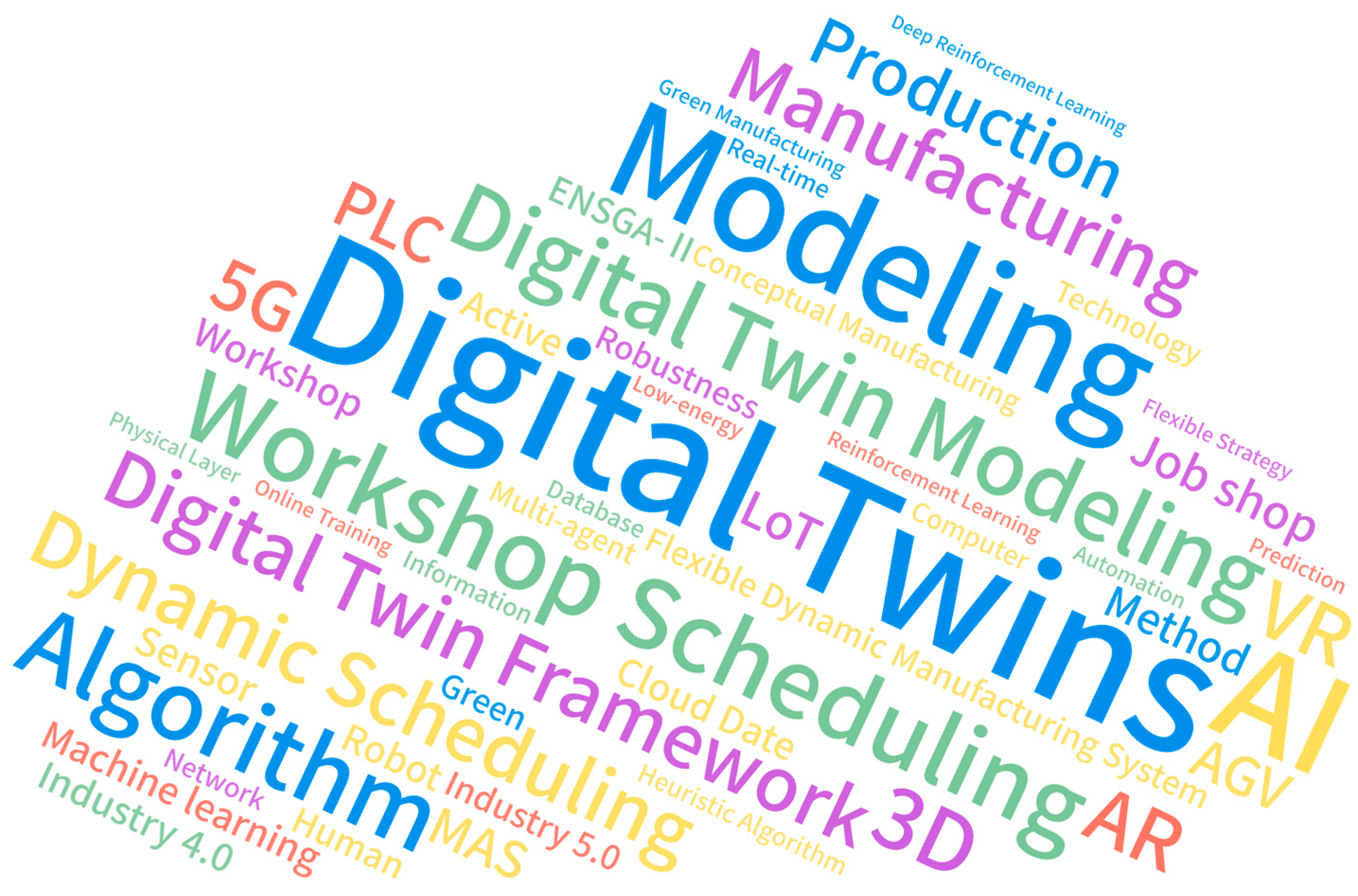 | 47 | 2022 | Sun Yucheng, et al. [48] | Modeling and Application of Digital Twin for Production Process in Intelligent Workshop. | Job shop | DT. OPC UA | Insufficient production transparency and lack of real-time, data-driven visual control on the shop floor. | A process-oriented DT modeling method for intelligent factories: build the DT framework; use point-cloud-based 3D geometry modeling, OPC UA information modeling for data interaction; perform multi-source data integration and fast virtual–real mapping. | A DT system was implemented in an engine manufacturing workshop, demonstrating accuracy and effectiveness and enhancing visualized, real-time production control. | Journal of Nanjing University of Aeronautics and Astronautics | Clarivate |