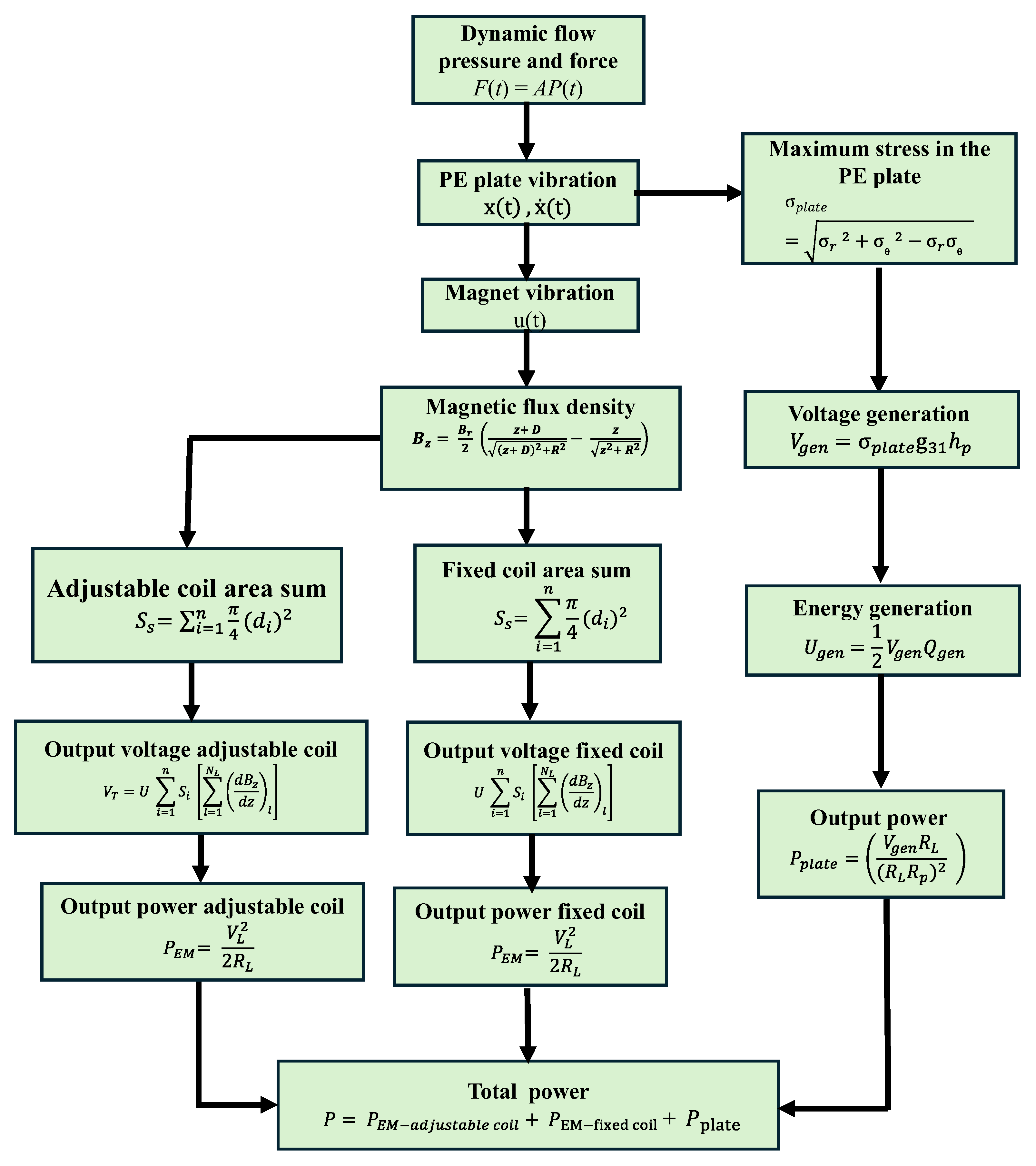 An analytical model was developed for the PE and EM components to investigate the elements influencing EH efficiency.