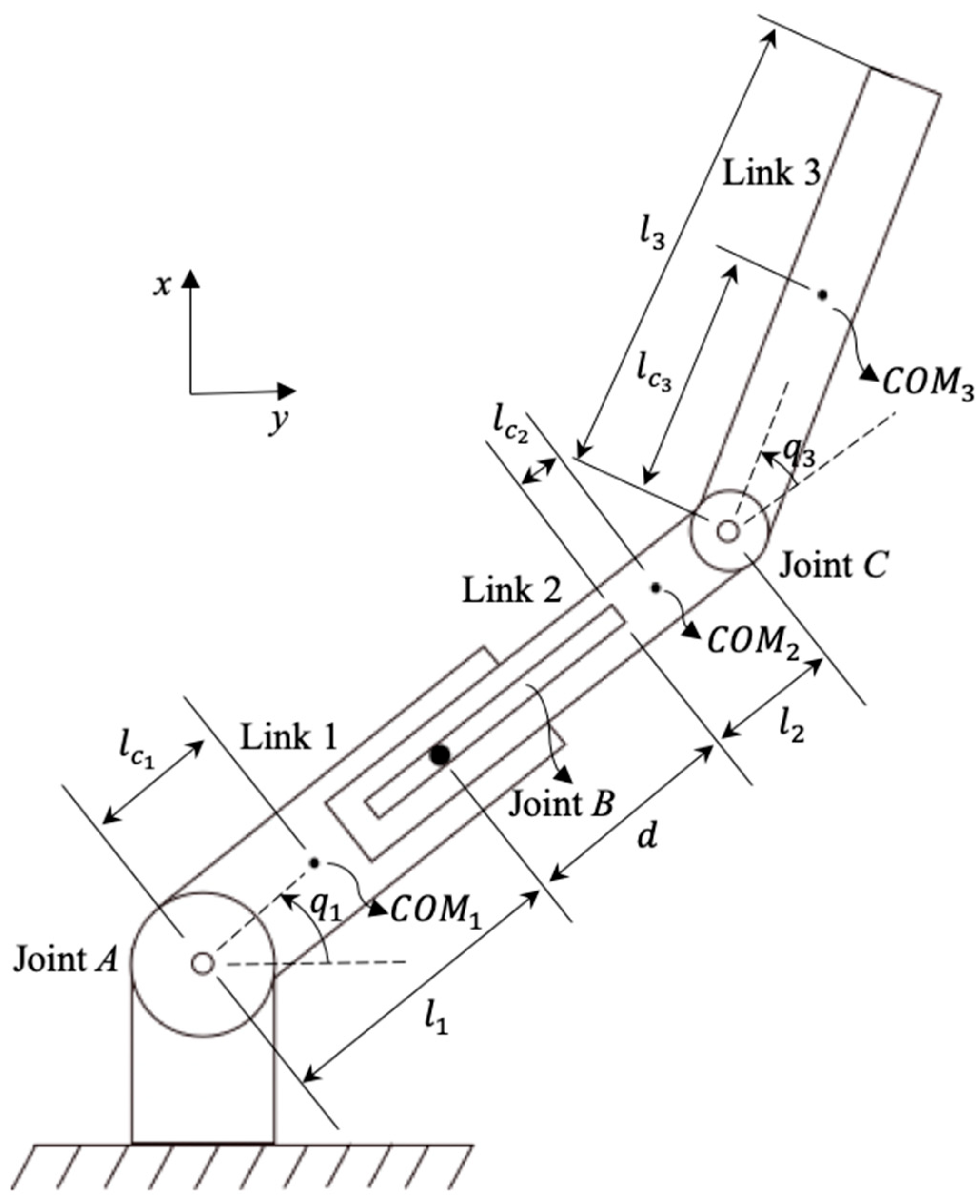 3. Dynamic Modeling of the Designed Three-Link Planar RPR Robotic Arm Mechanism