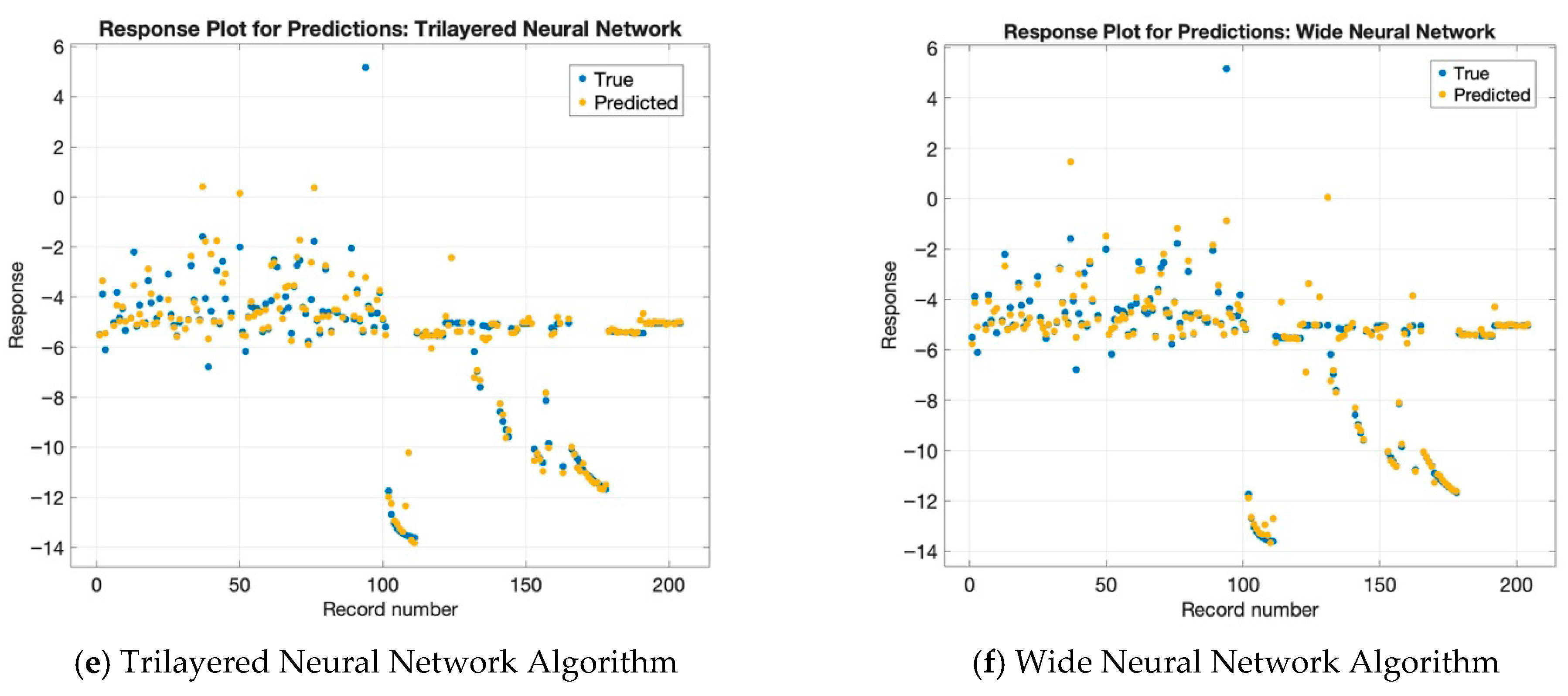 Figure 3 presents the response plots for each neural network model used in the prediction task. As shown in