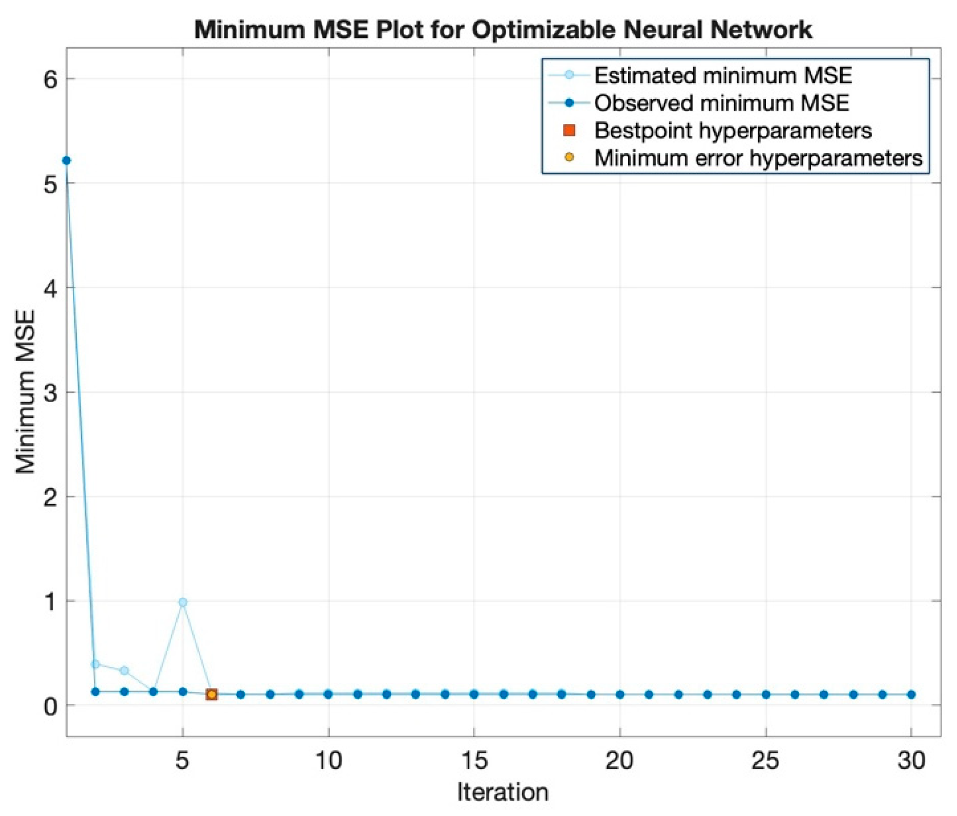 The minimum Mean Squared Error (MSE) plot for the optimizable neural network is shown in