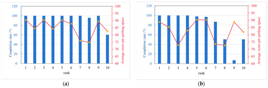 Completion rate and average parking space score: (a) Set B; (b) Set C.