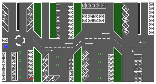Three test sets, A, B, and C, are designed as shown in Figure 4. Each set generally covers three classes of parking spaces and ten scenarios but has different number of parking spaces and difficulties.