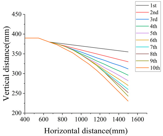 Based on the orthogonal experimental results of the first-pass necking spinning, it can be concluded that the process parameters exert a significant influence on both forming load and plastic deformation. Among the tested combinations, the parameter set of spindle speed 150 rpm, axial feed rate 135 mm/min, and radial feed rate 2.75 mm/min effectively reduced the maximum equivalent stress (468.41 MPa) while maintaining a reasonable equivalent plastic strain (2.79). This achieved an optimal balance between suppressing the risk of forming cracks and ensuring sufficient plastic flow of the material. Therefore, this parameter combination can be regarded as the preferred scheme for the first-pass necking spinning, providing a reference for parameter transition and overall optimization in subsequent multi-pass forming. Similarly, the remaining nine passes were also analyzed using the same orthogonal approach to determine their respective optimal process parameters; however, the detailed data and procedures are not reiterated here and are only applied and validated in the context of overall process optimization.