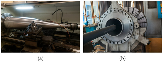 Machining of the spun nozzle: (a) outer surface turning; (b) inner surface finishing.