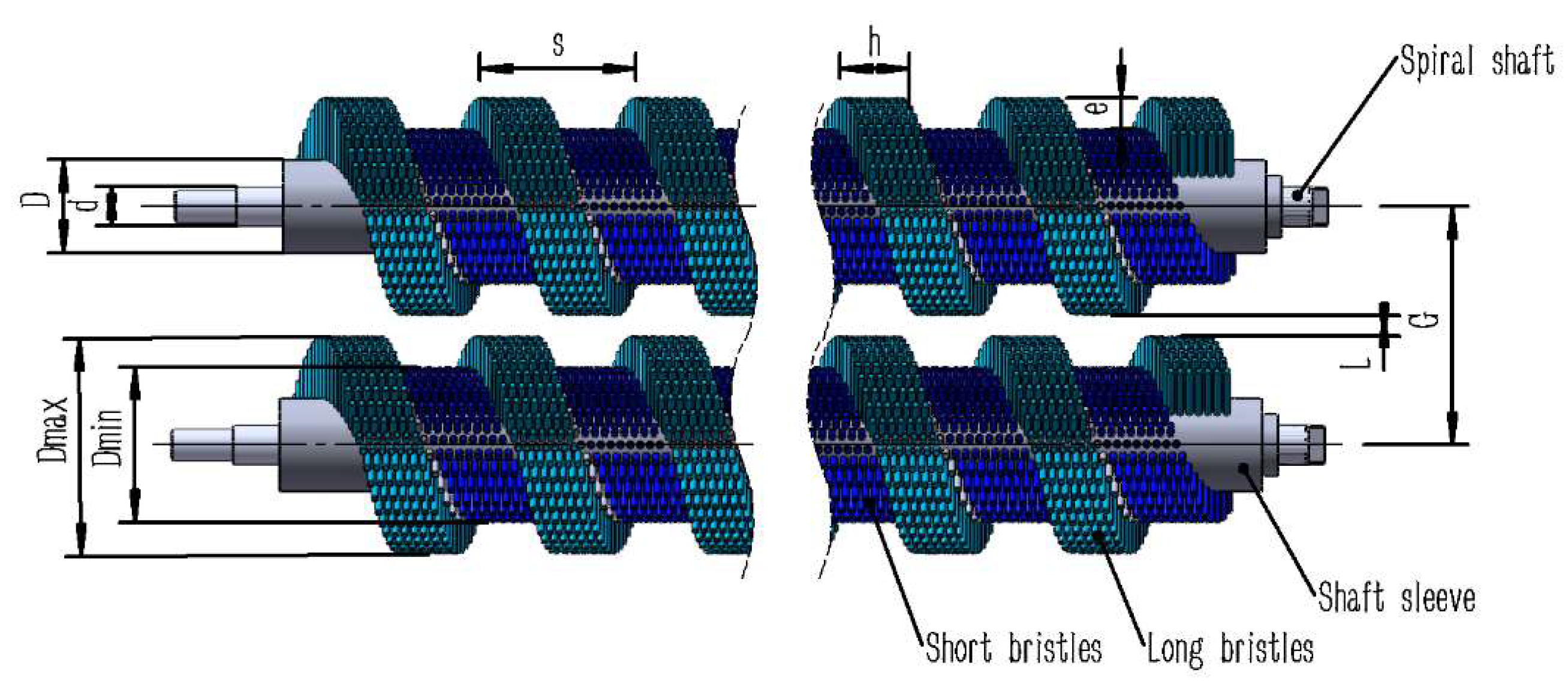 4.1.2. Structural Design and Parameter Determination of the Roller Brush